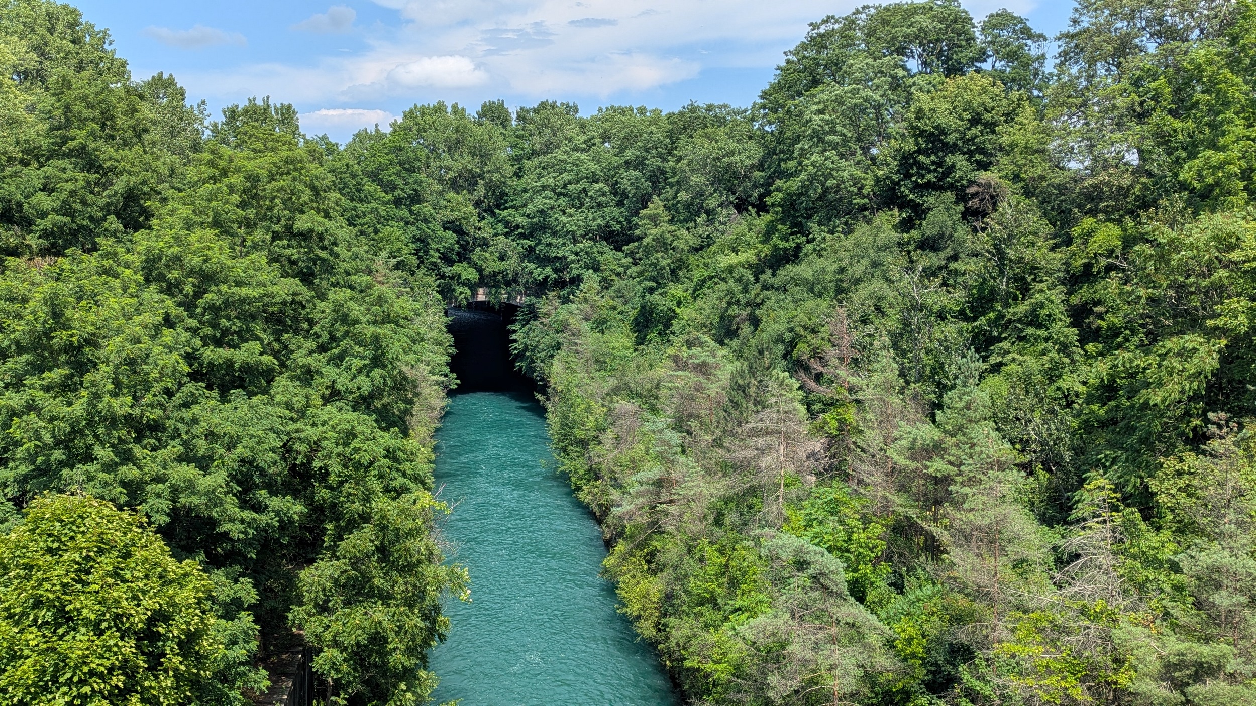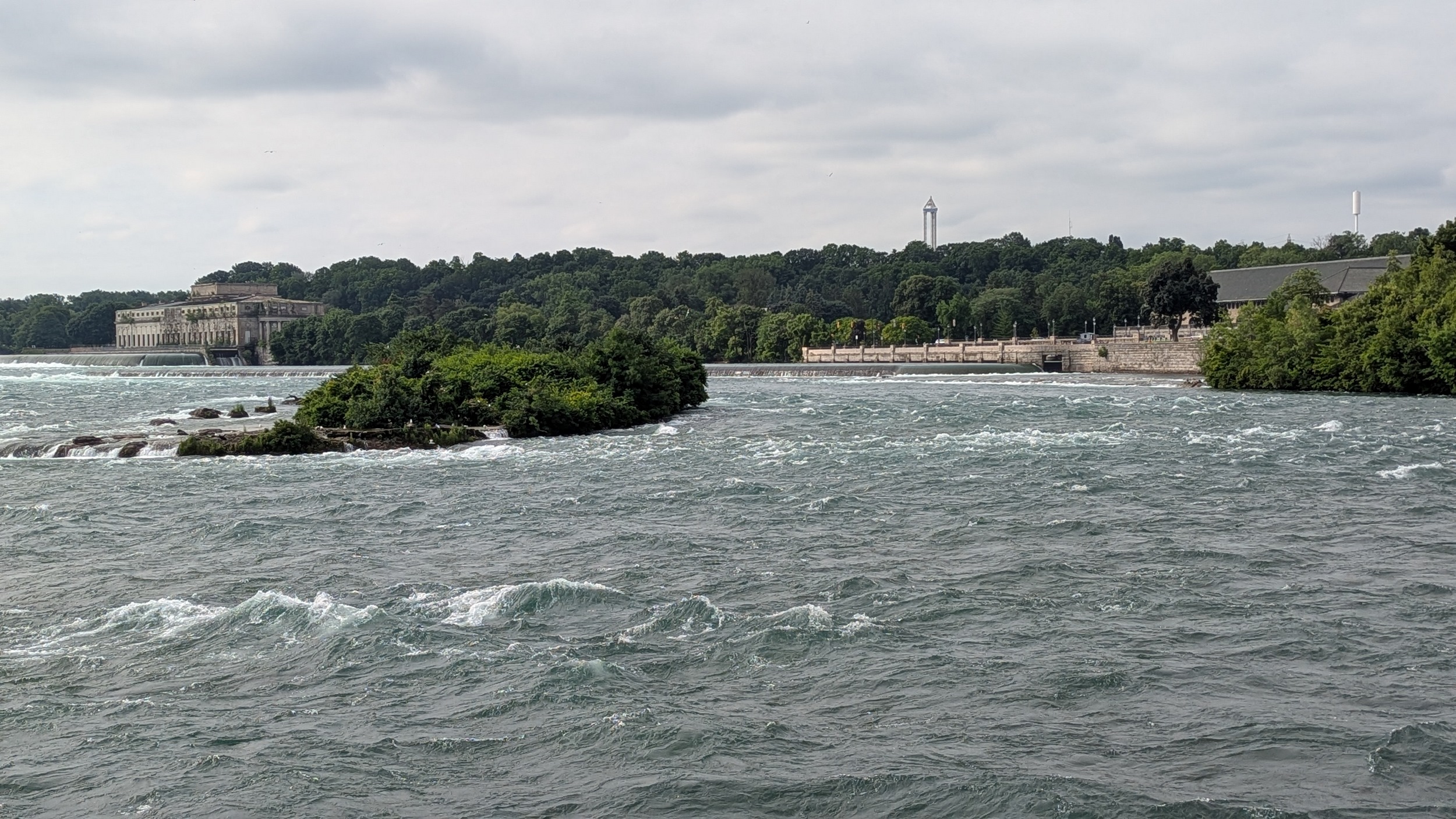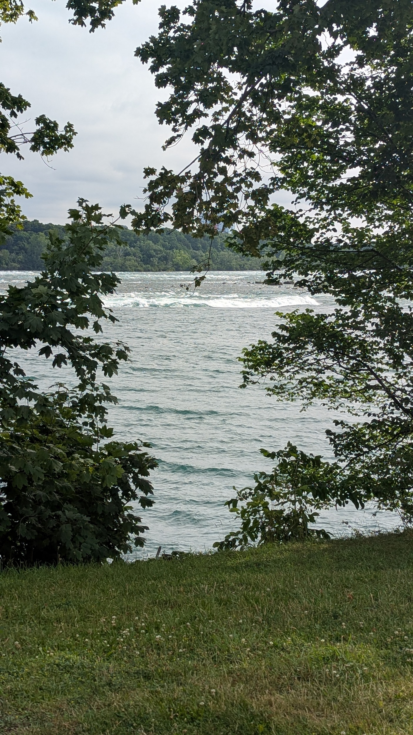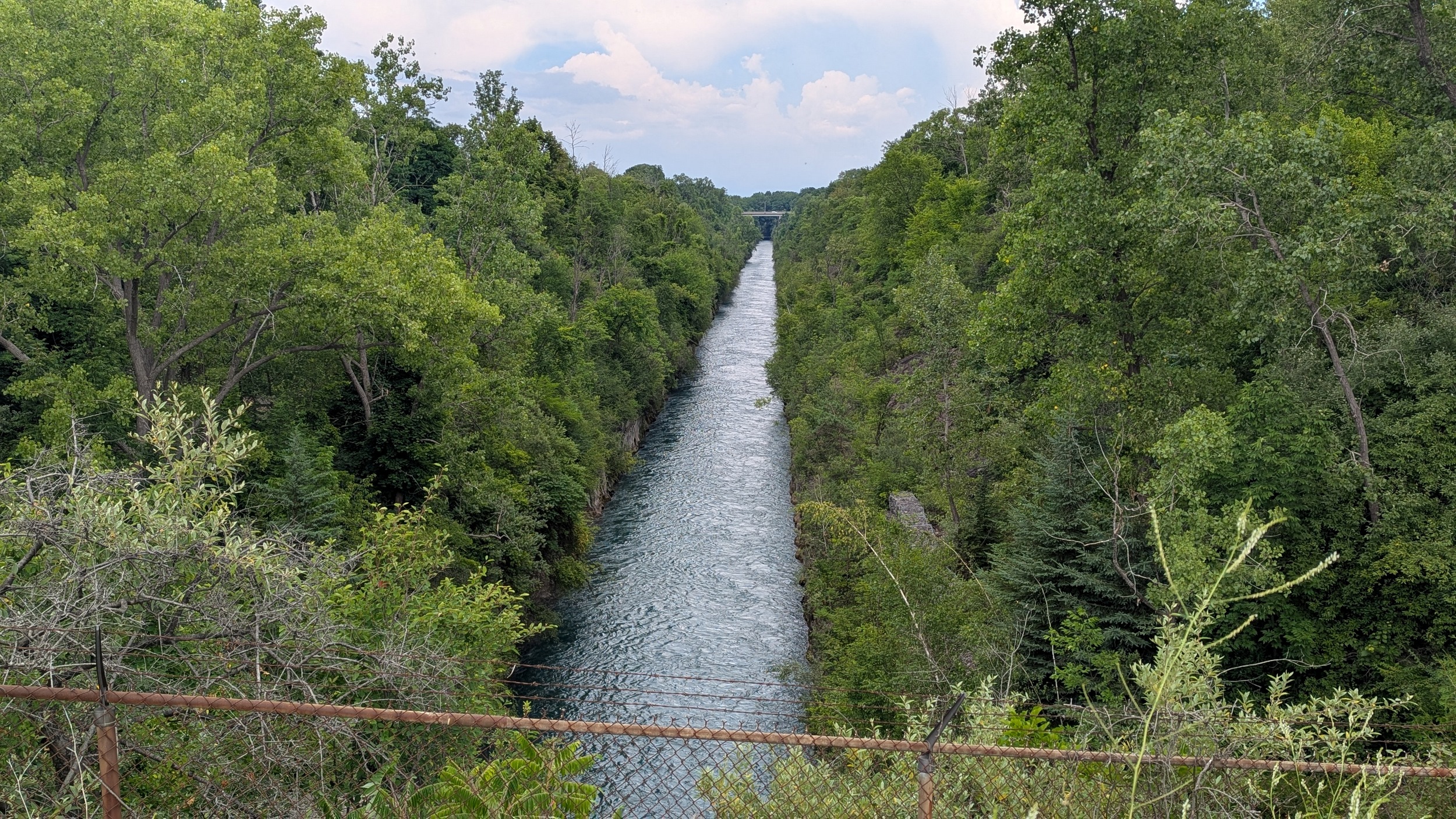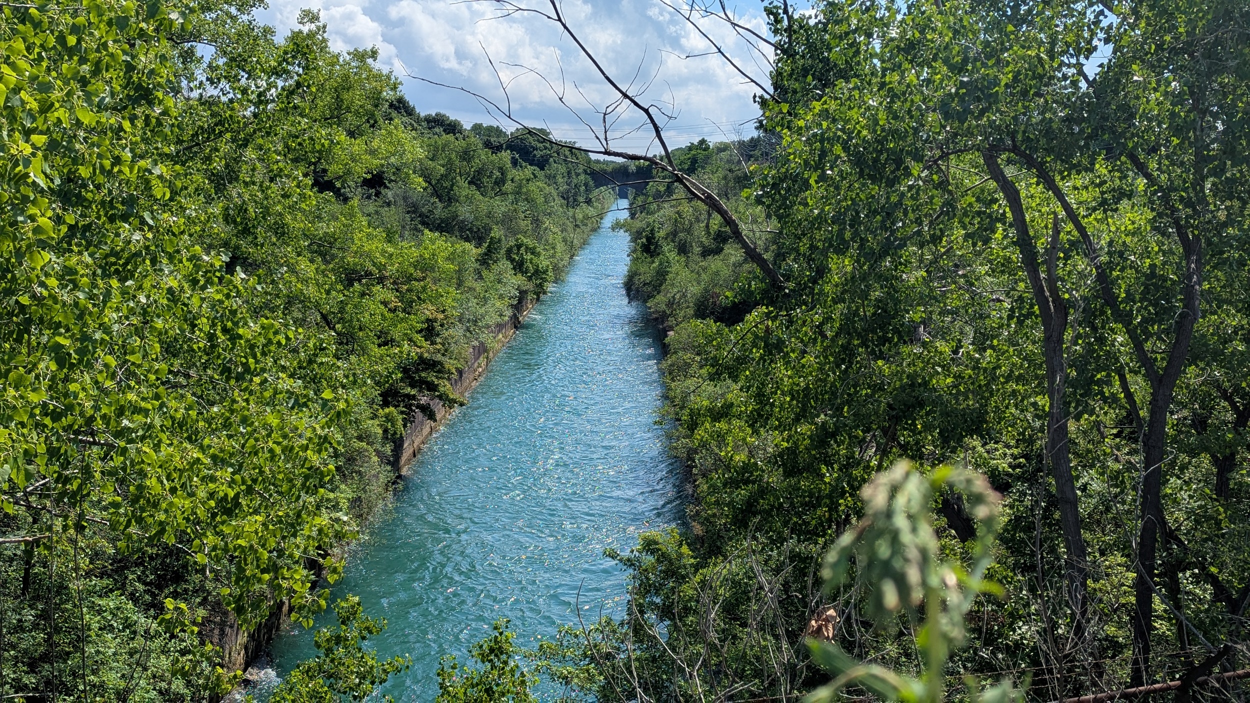 Ok I’m distracted. The power canal is still aways and I’m marveling at the Niagara River’s beauty upstream of the Falls. That includes a side channel along the Dufferin Islands, which are manmade and influenced by the weirs built for the former Ontario Power Company Generating Station. This is a peaceful place.