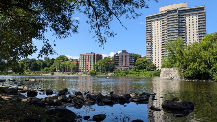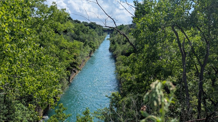 The conservation area provides a great view from the bluffs, as well as an excellent quality trail that keeps you cool with plenty of shade. The trail skirts Park Crescent and starts to sink down, making you think you’re heading for the water’s edge, but a private lot on Marksbury Road thwarts that.