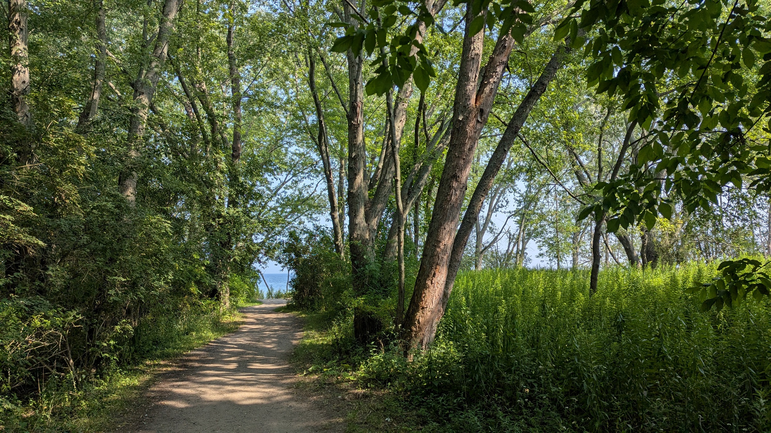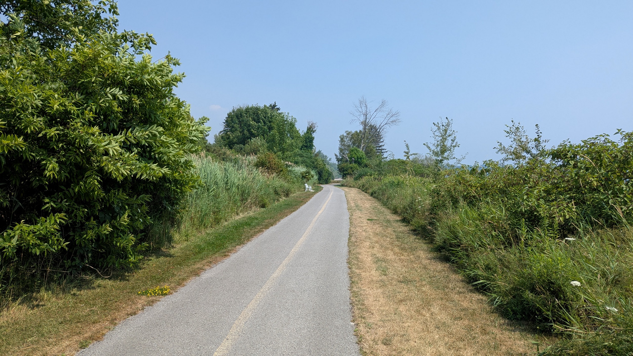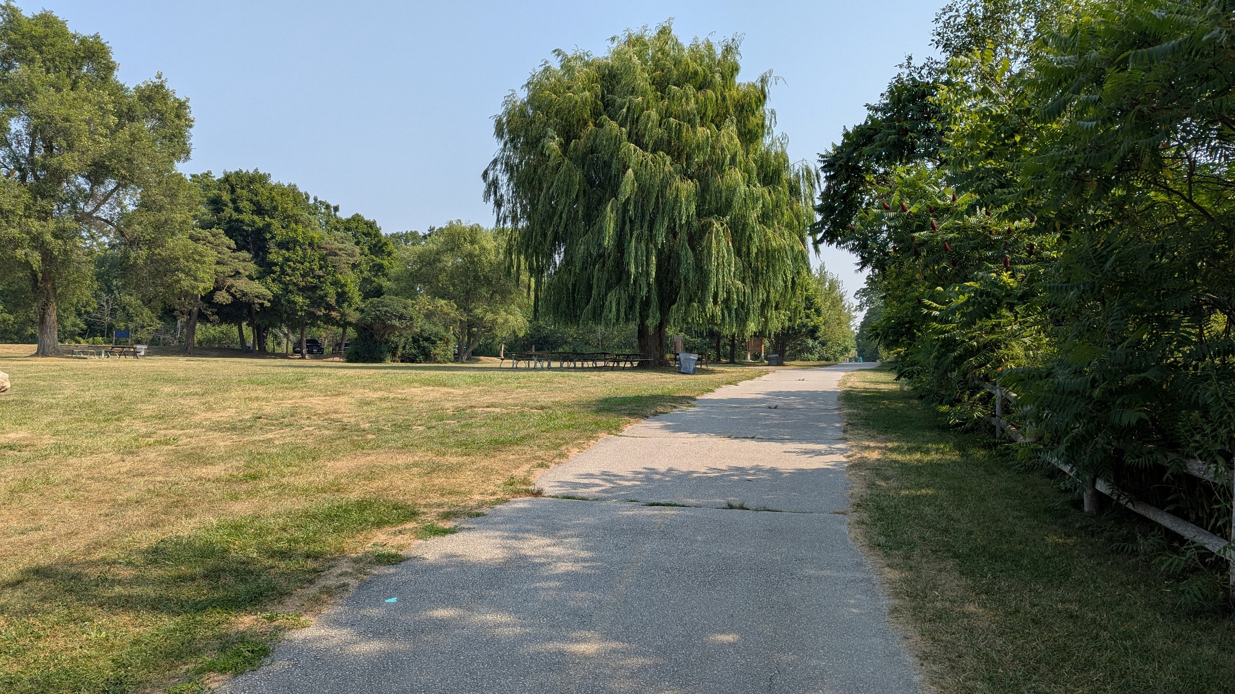 Through Ajax’s Waterfront Park, with a solid trail, benches, lots of trees and plentiful open space. Top marks for a pavilion with cold treats for sale, and free public washrooms and fountains close to the waterfront trail. That said, it’s hot and exposed. It’s fine when the lake breezes are coming over the bluff to cool you, but there’s some stagnant sections that’ll bake you if you aren’t under a tree.