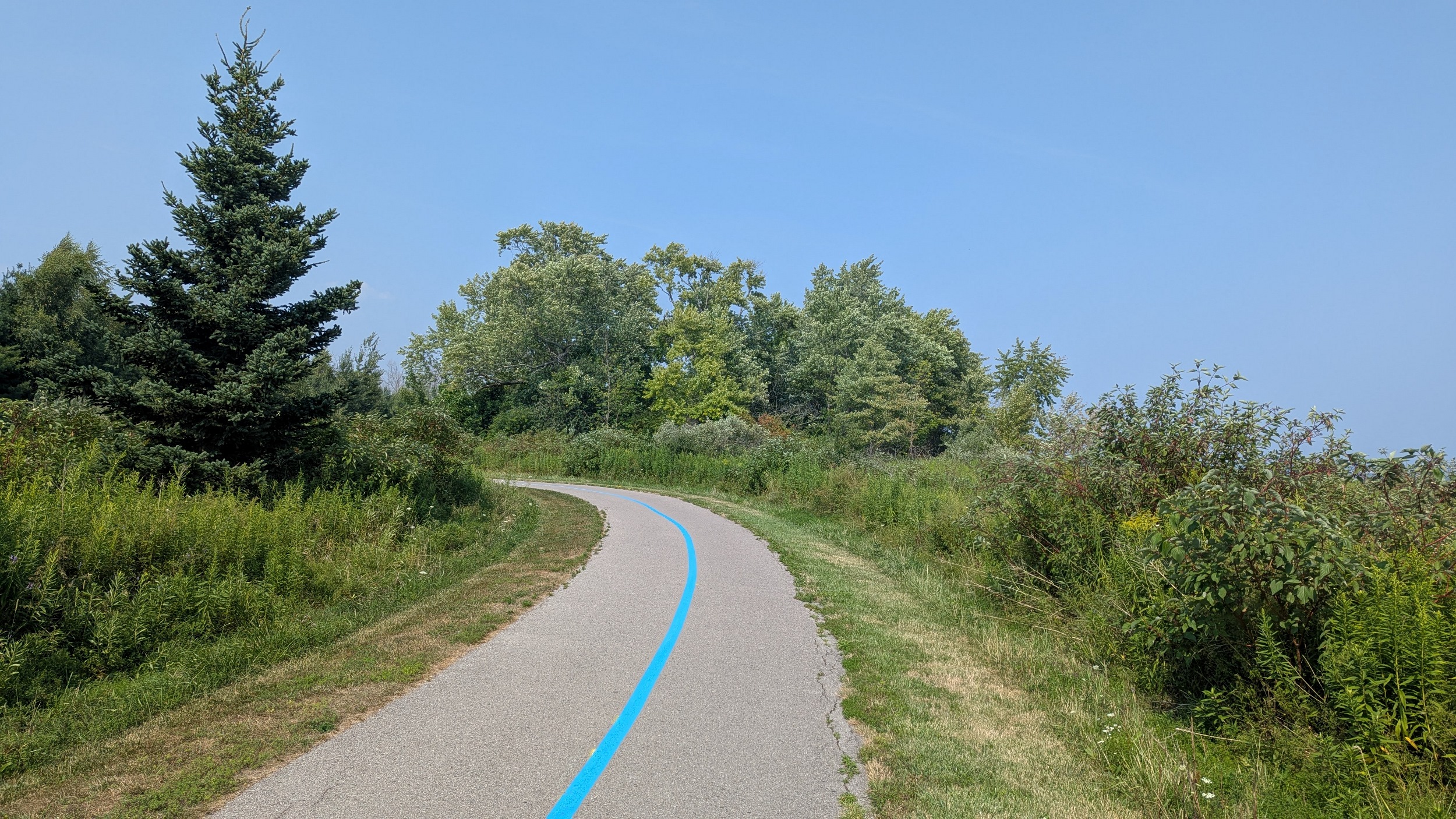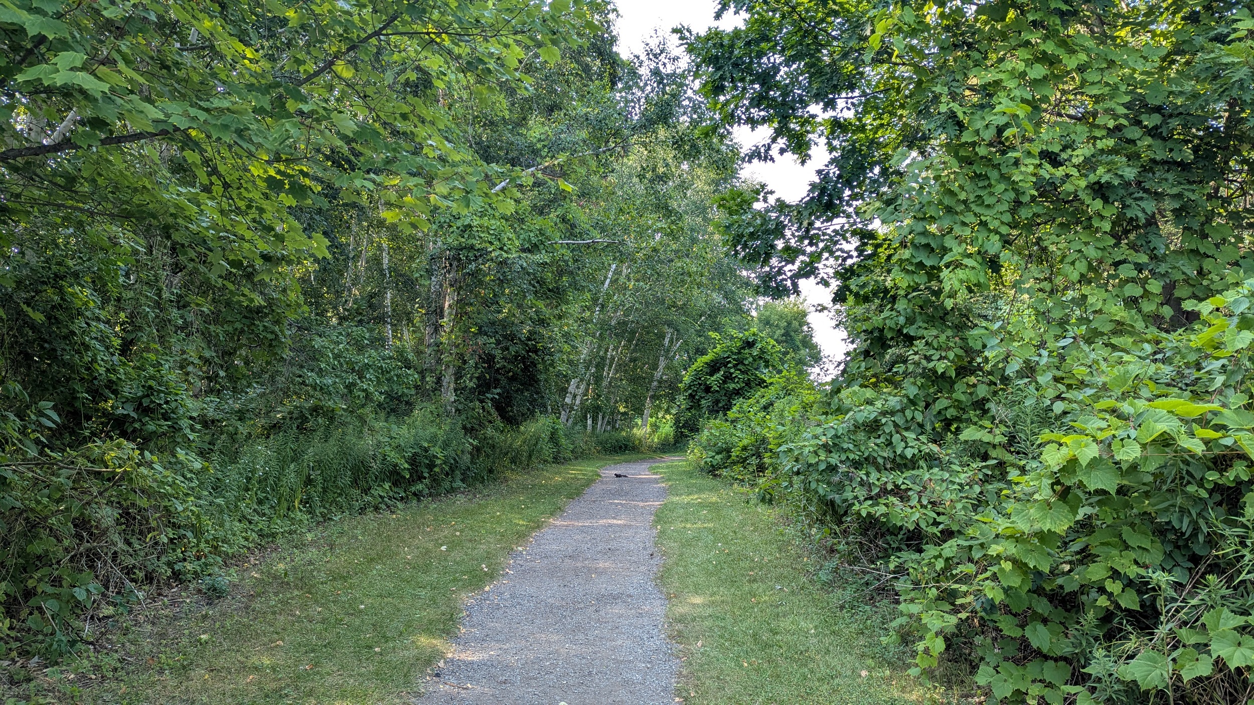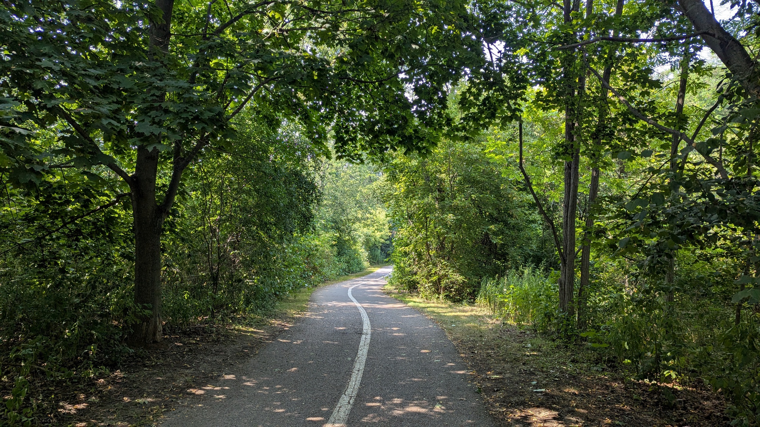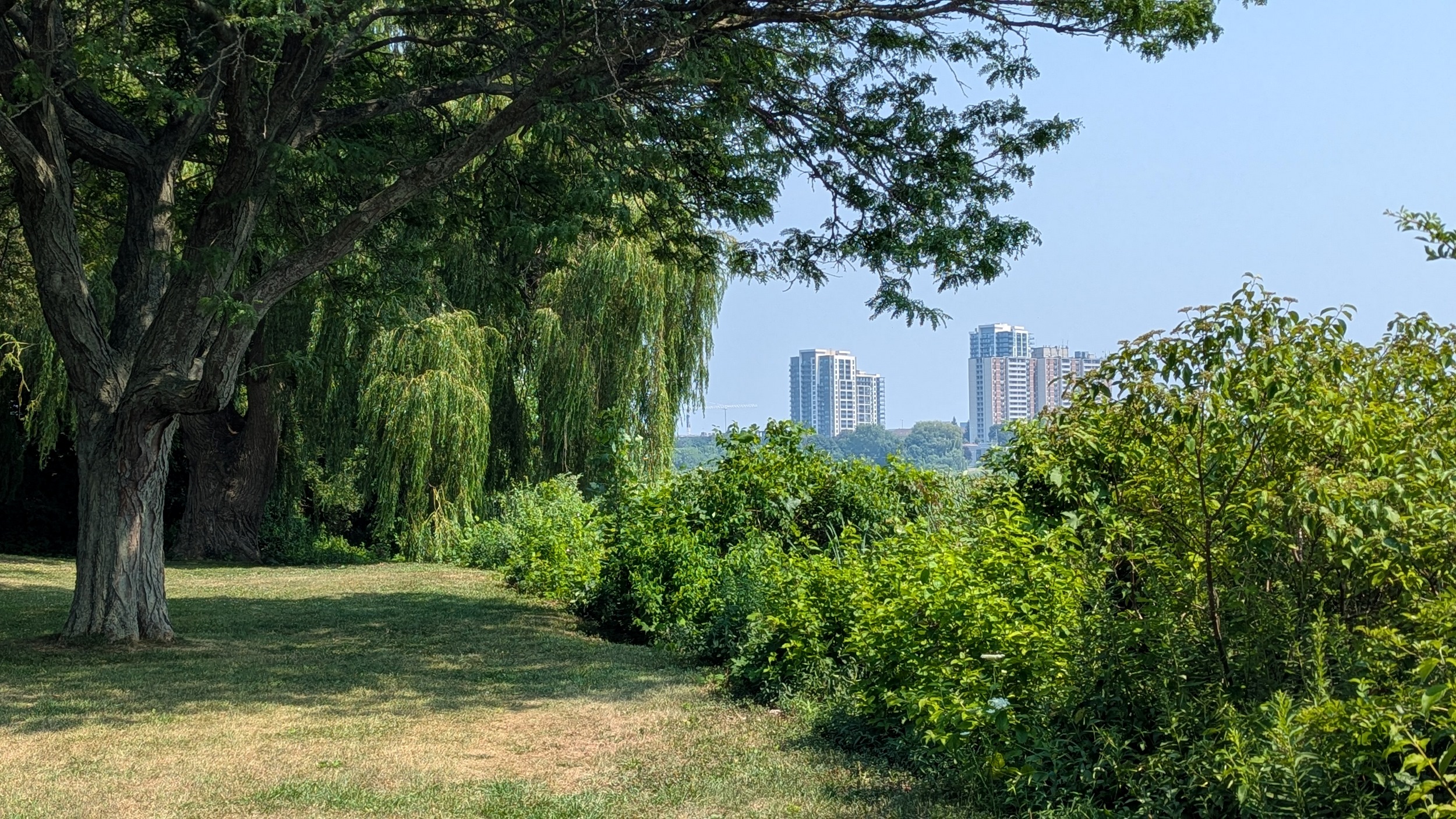 Through Ajax’s Waterfront Park, with a solid trail, benches, lots of trees and plentiful open space. Top marks for a pavilion with cold treats for sale, and free public washrooms and fountains close to the waterfront trail. That said, it’s hot and exposed. It’s fine when the lake breezes are coming over the bluff to cool you, but there’s some stagnant sections that’ll bake you if you aren’t under a tree.