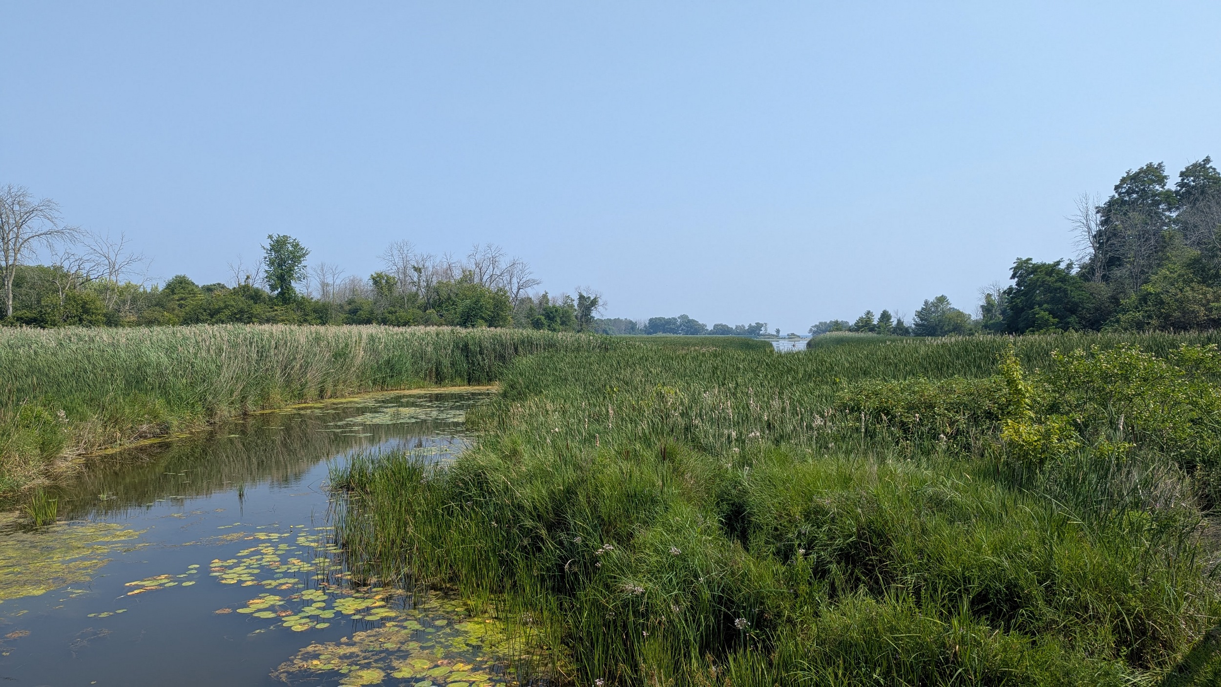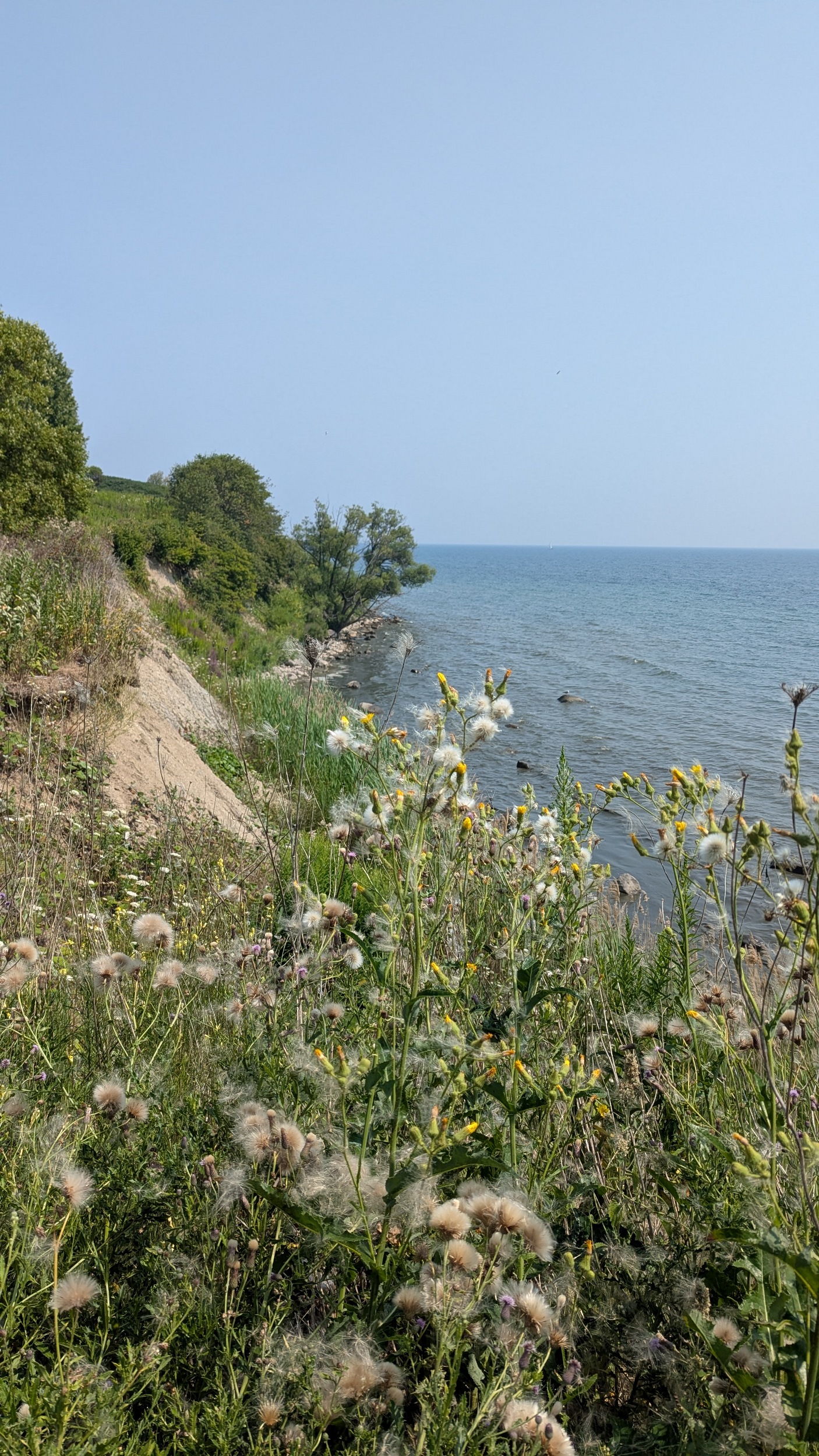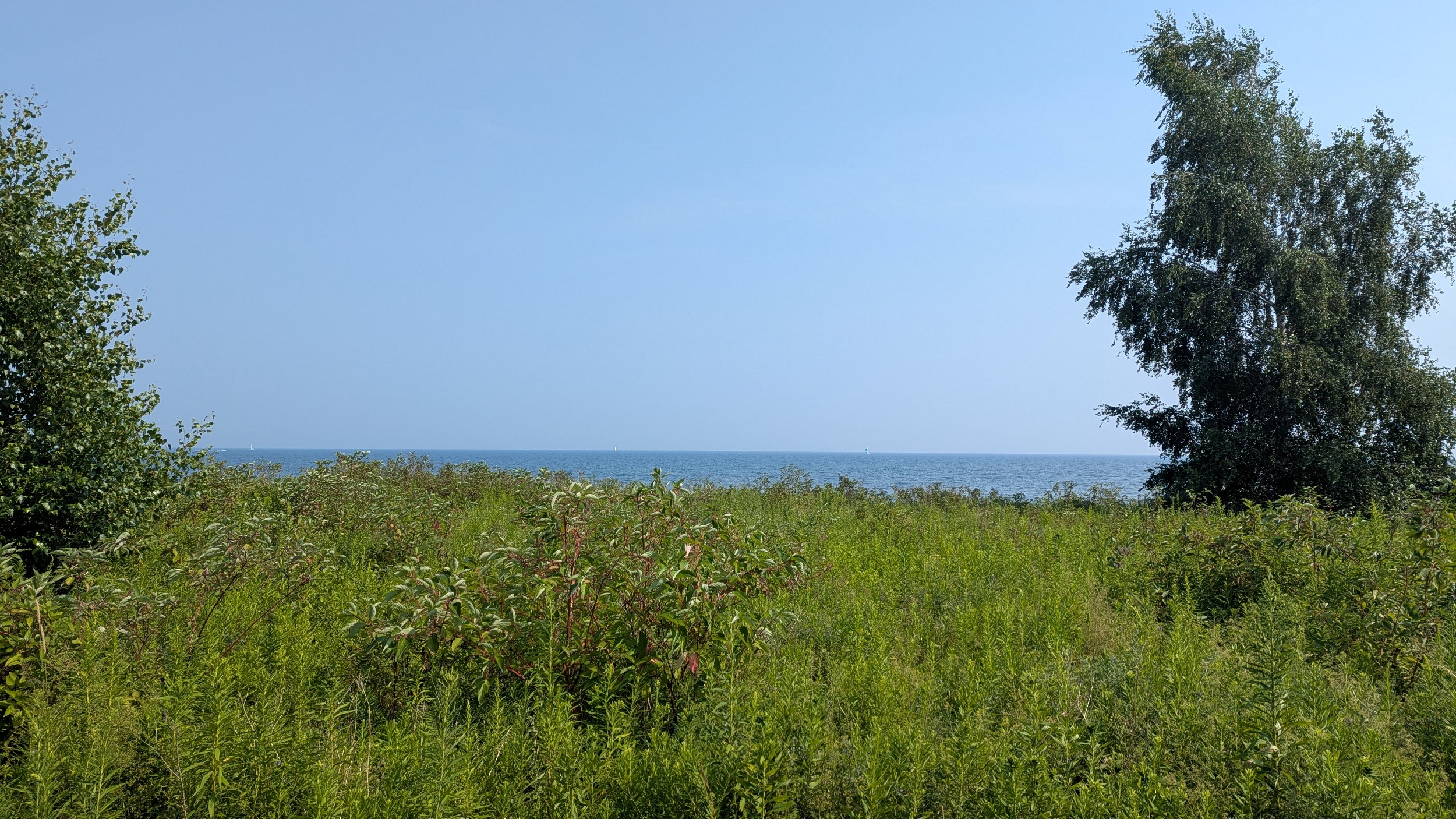 Further into the conservation area, you come to the same spit splitting Lake Ontario from Cranberry Marsh. I traversed the beach for the most part, but had to go inland a couple times and risk exposure to cow parsnip. But it is an unreasonable detour. Eventually I made it through.