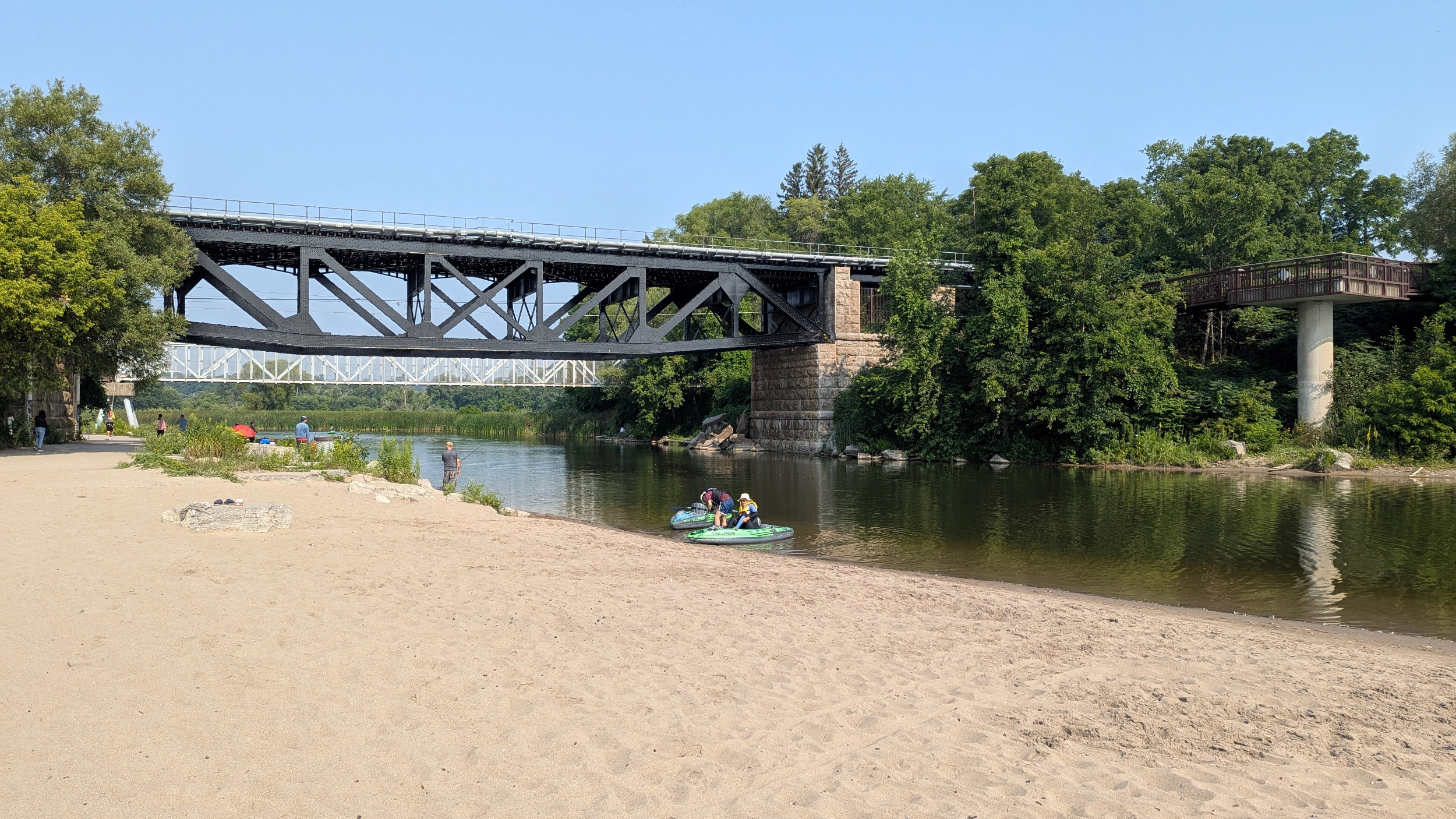 Either people are betting on the air forecast like I am, or current conditions aren’t stopping them. The shoreline entrance into Rouge National Urban Park is bustling with bikers, hikers, bleachers and kayakers.