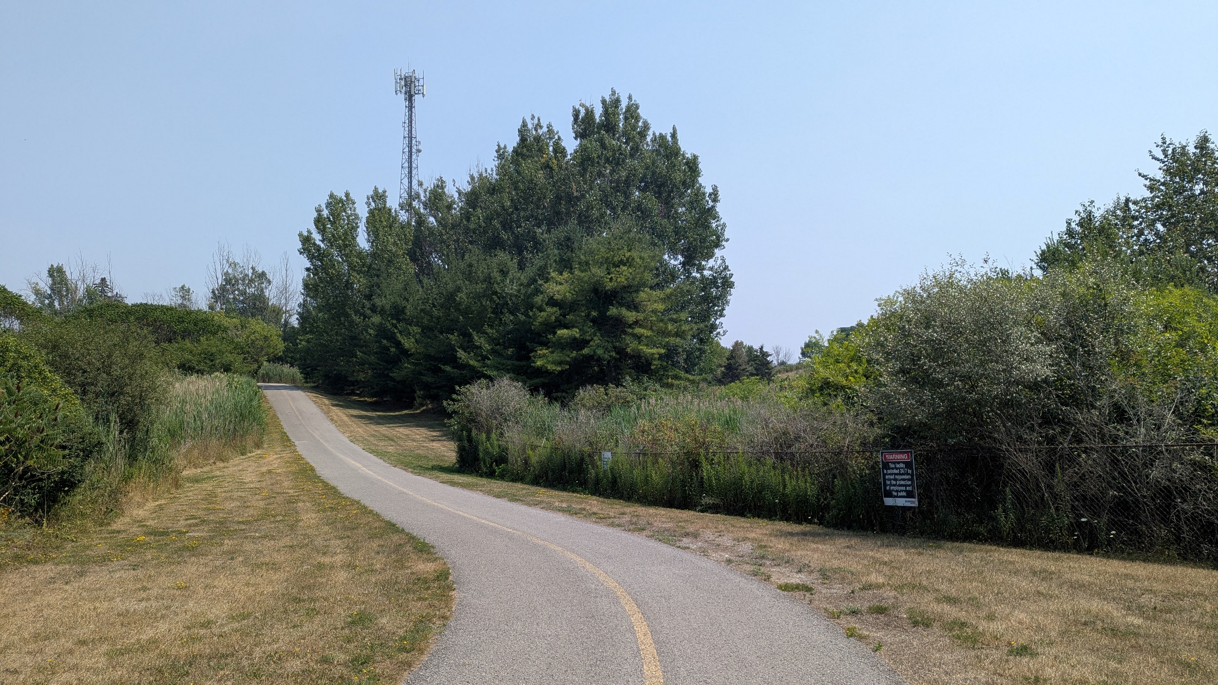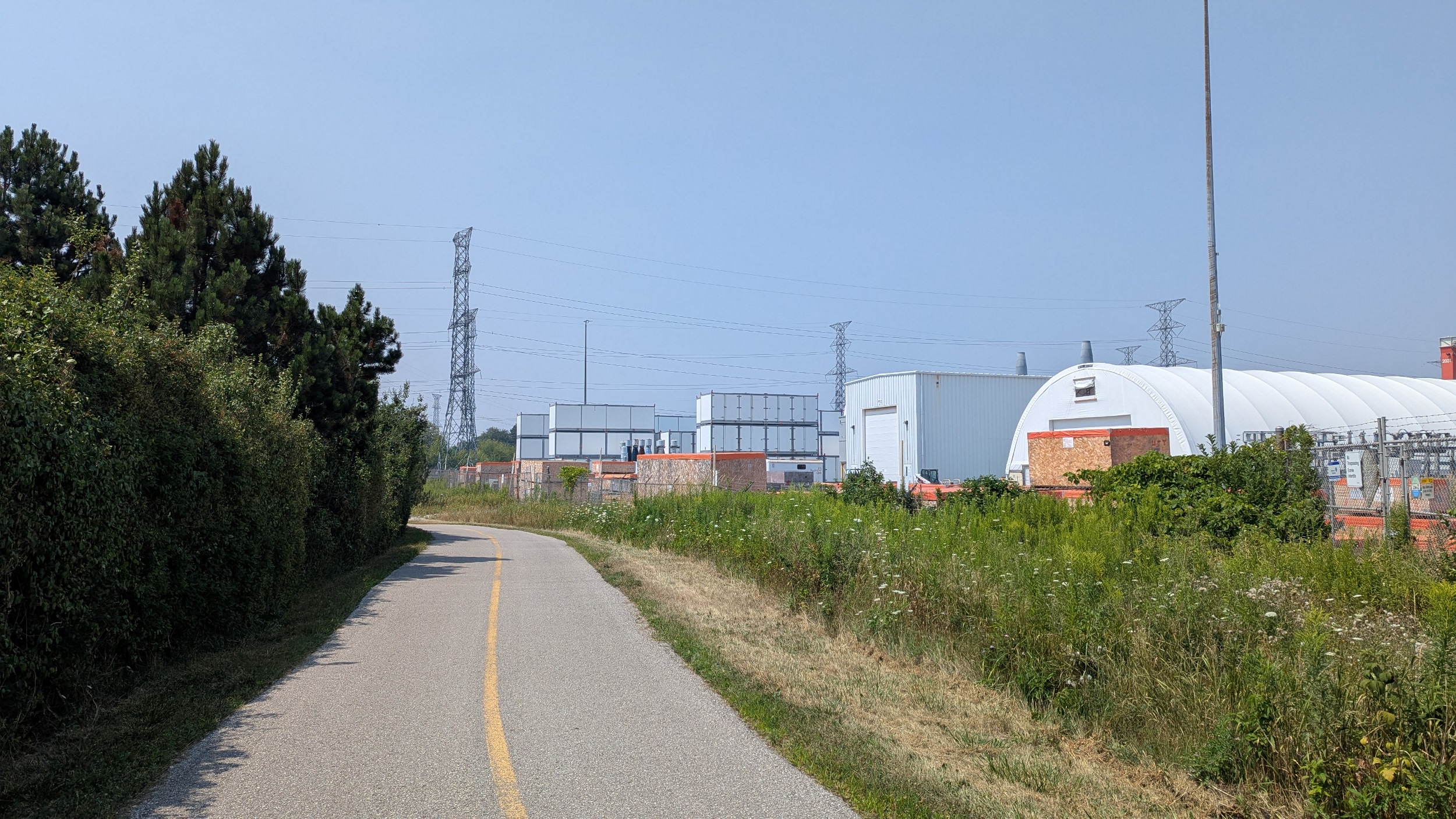 At the end Beachfront Park, you reach the fences of the Pickering Nuclear Generation Station. You get push around it to the north, but it’s all via a formal trail. You reach the shore again at the end of Montgomery Park Road.