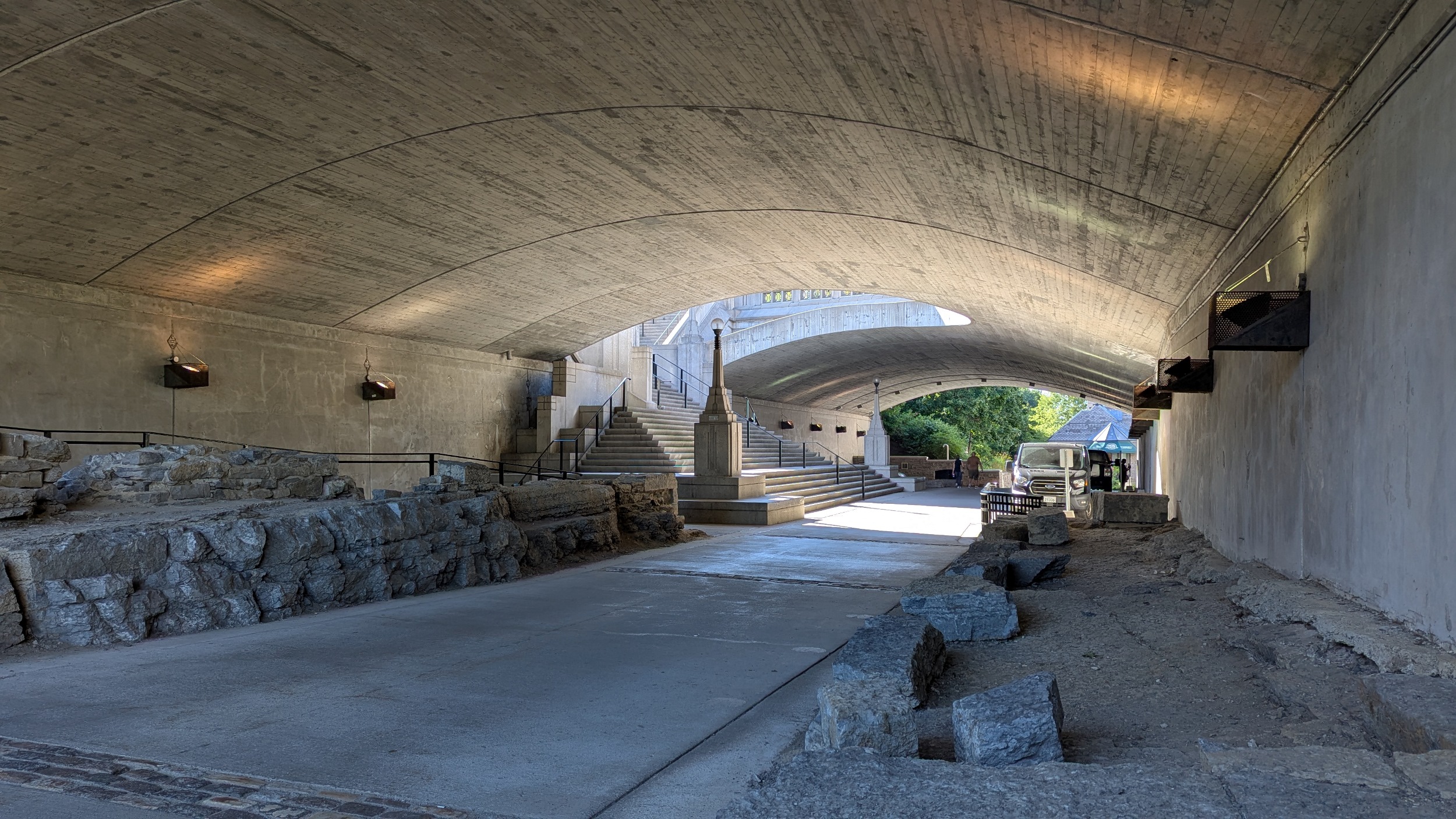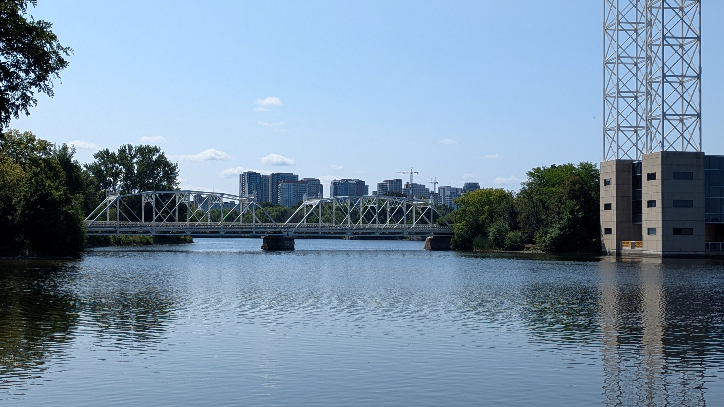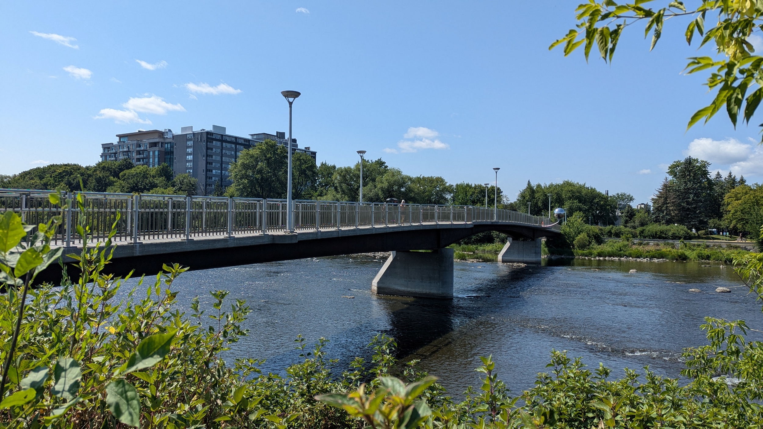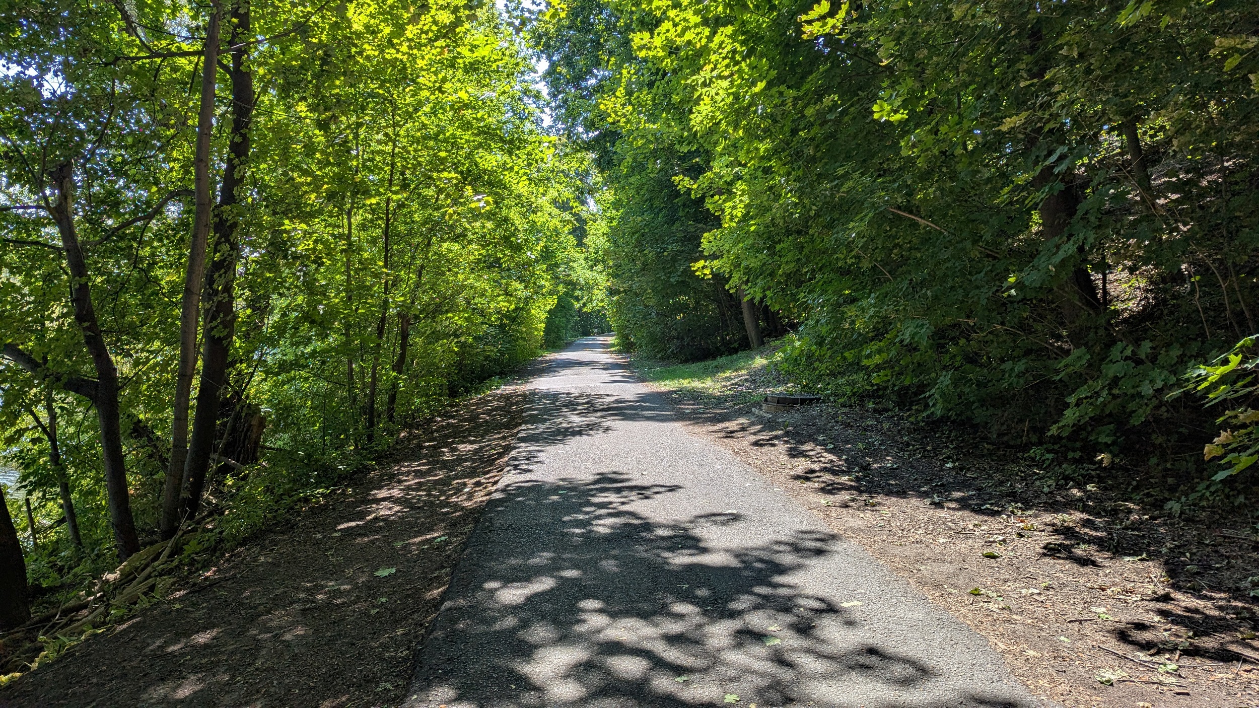 After a large detour at the St Patrick Street Bridge, it’s back to shady trails. The number of islands, riverside viewpoints and mid-/high-density housing buildings continues to impress me. Also appreciating the bridge character.