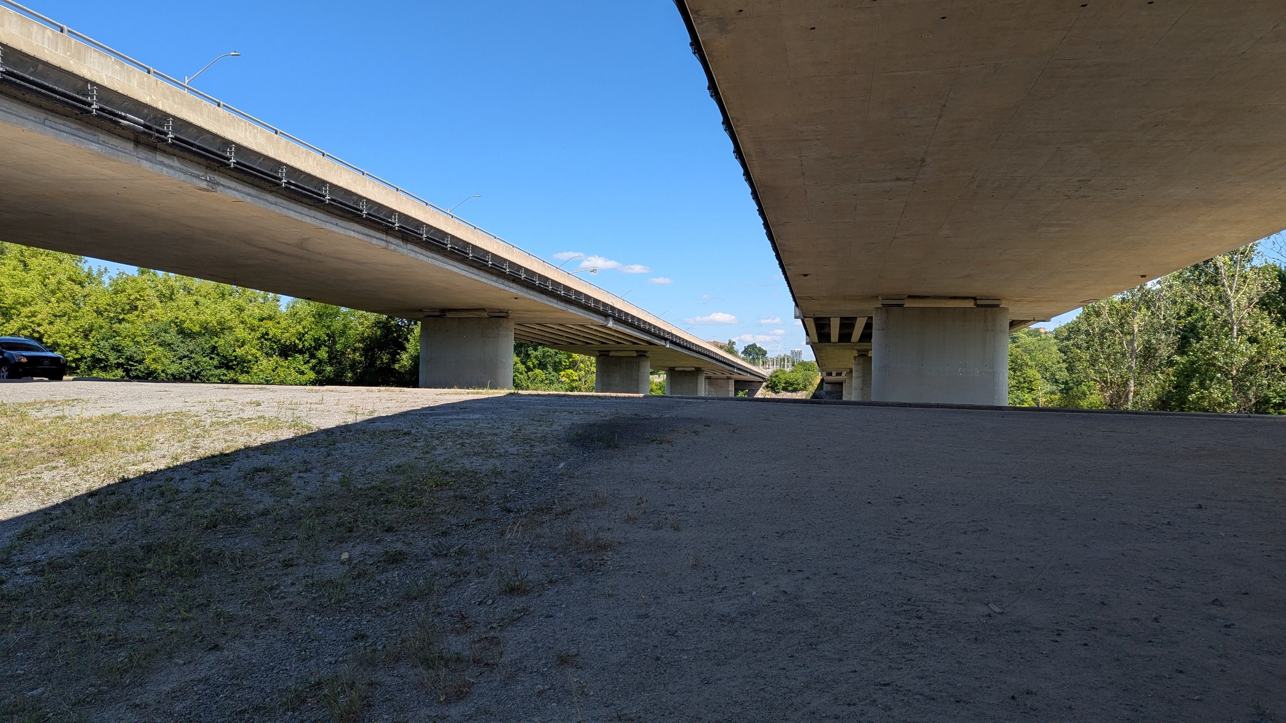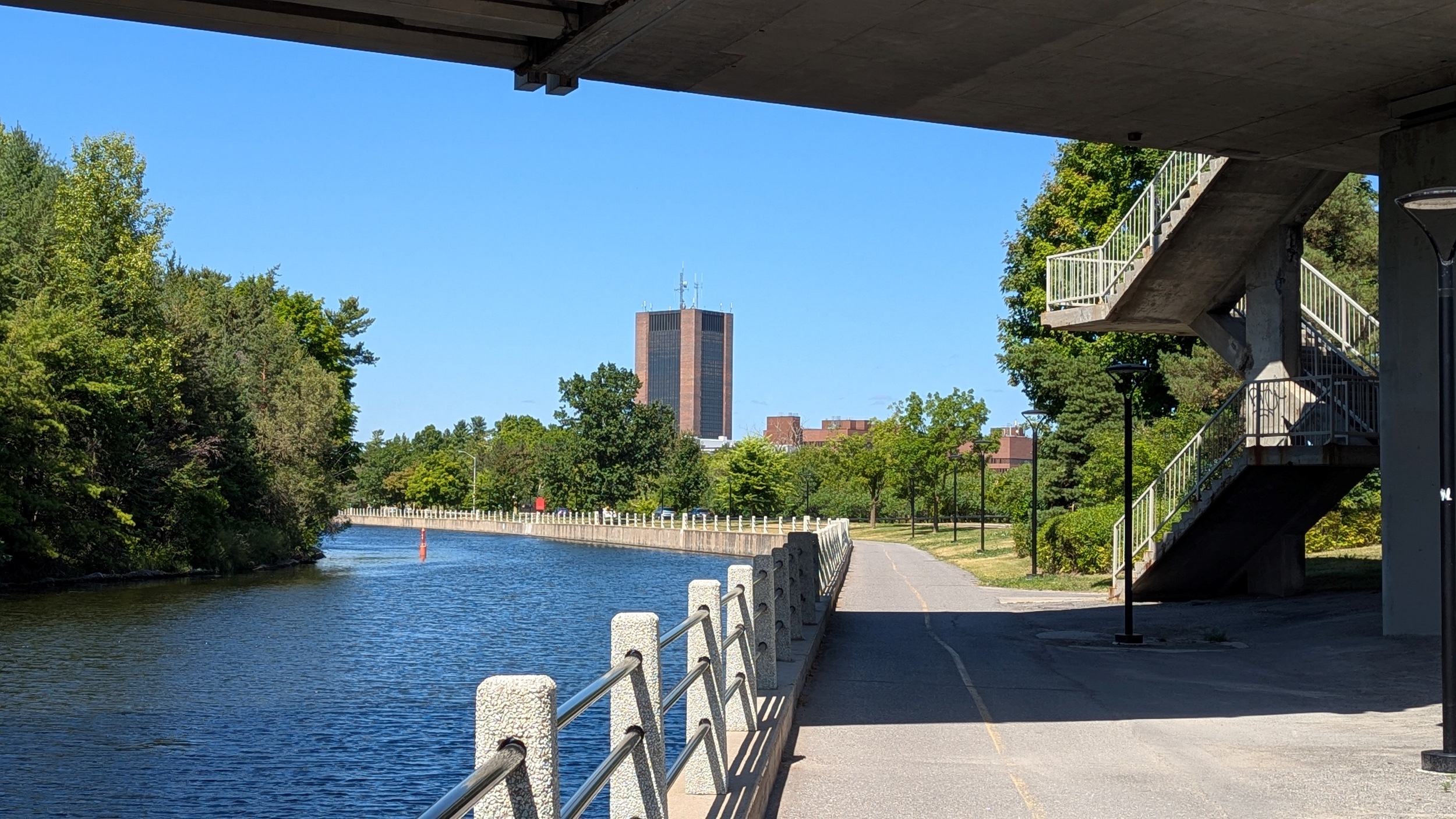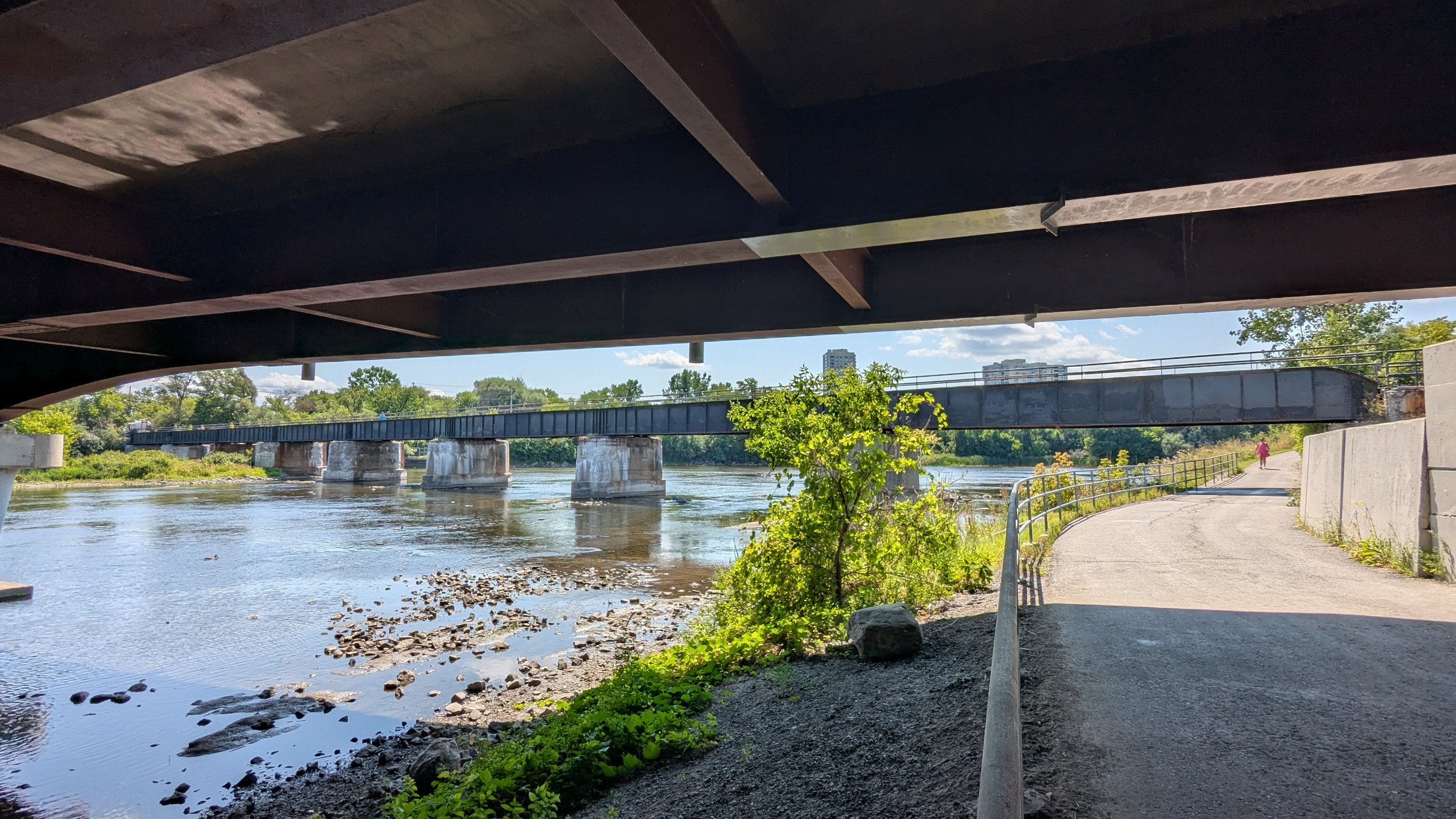 Hopping over to the west bank for a bit. More high quality trail brings you to the underside of Highway 417, and immediately south of that, a former rail bridge now used as a pedestrian path. I’m using this to cross back over.