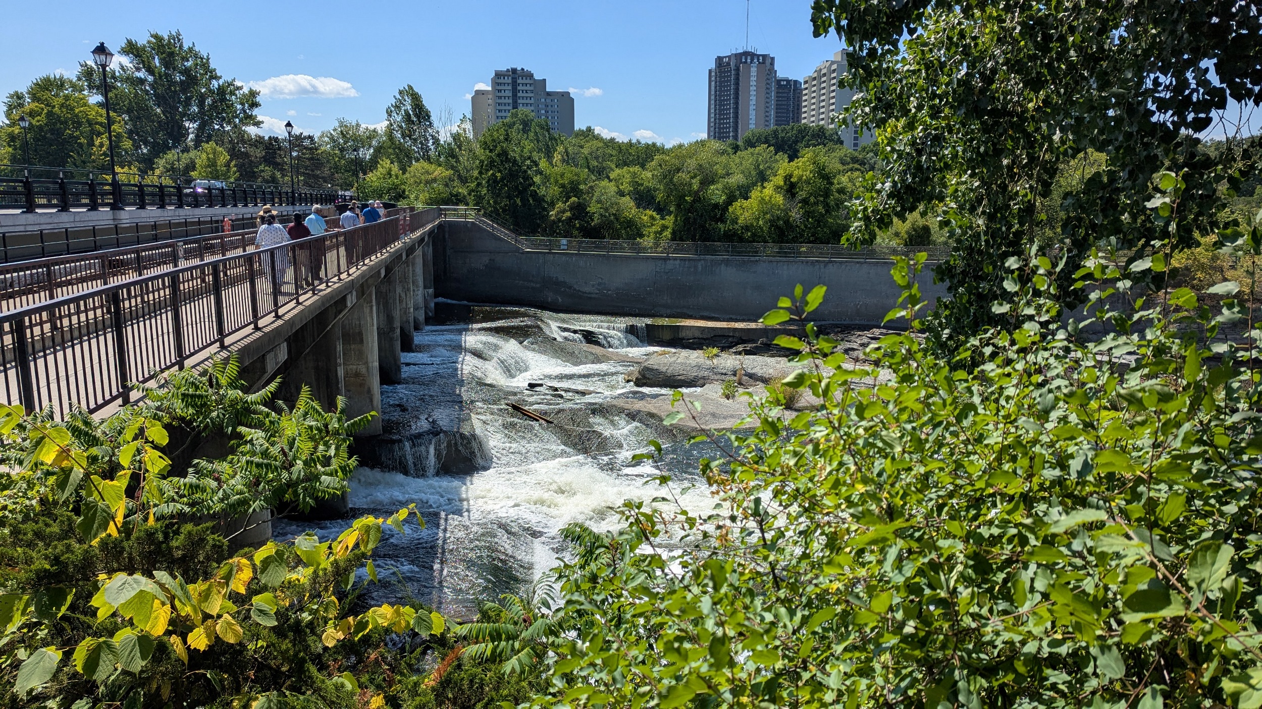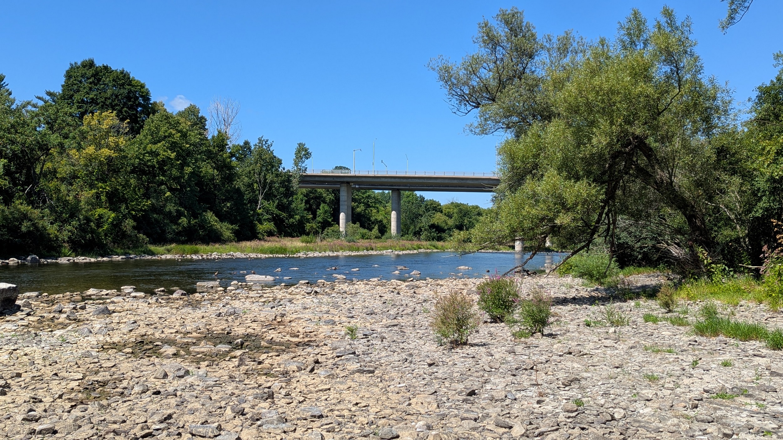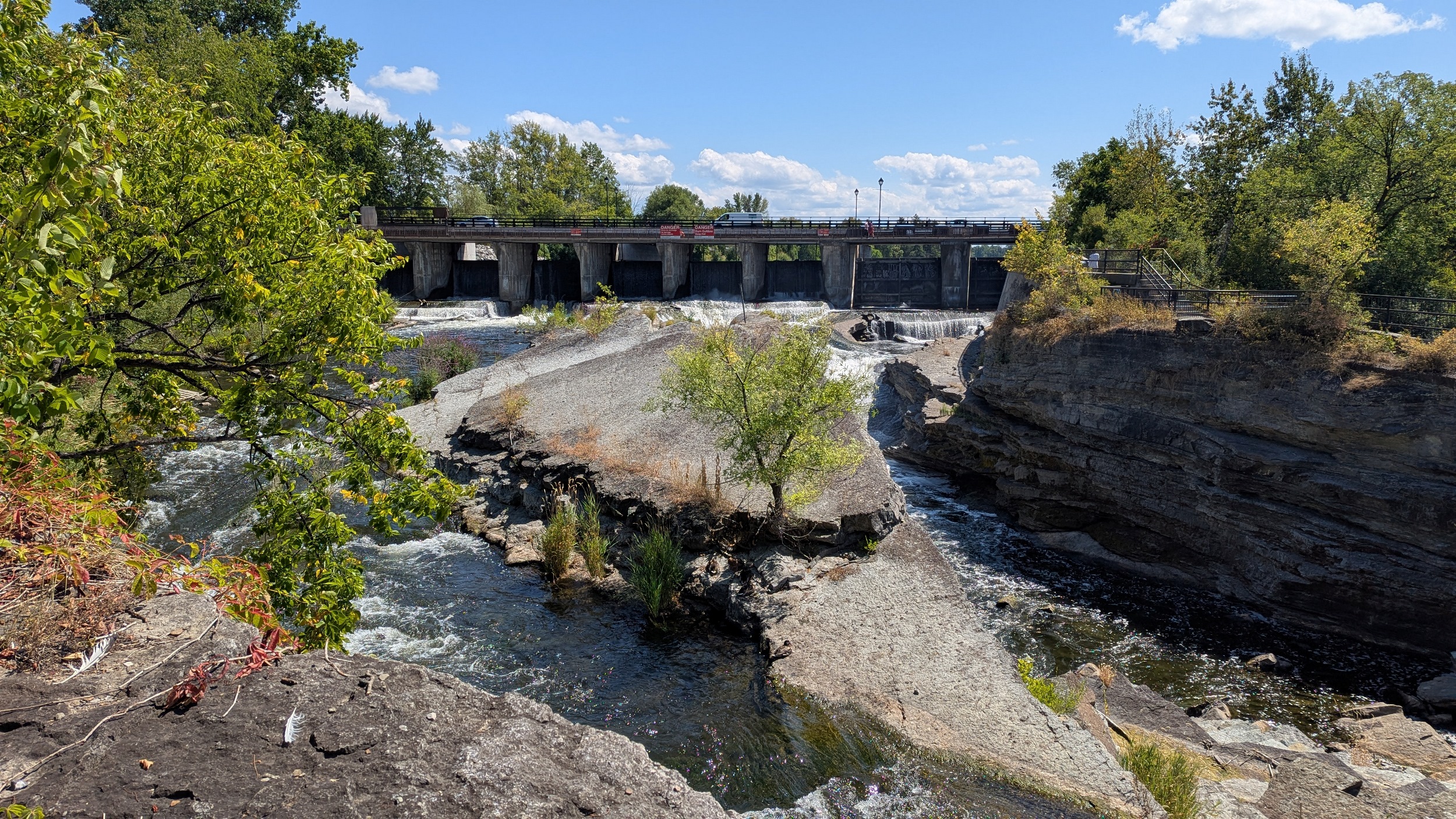 Oh my, Rideau, your geology is showing. The bedrock here at the Adàwe Crossing Bridge makes the river look like it’s flowing over a weir. But it’s a natural shallowing and rapid section.