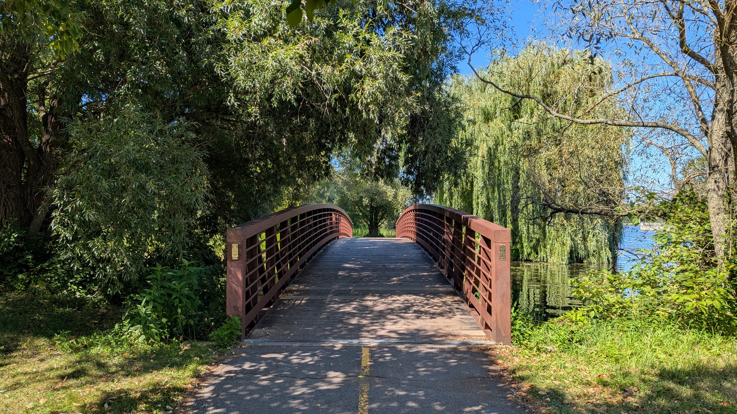 Past Patterson Creek, over the Pretoria Bridge, and under the 417. The west edge offers separated pedestrian and bike paths, which lead to the final bend.