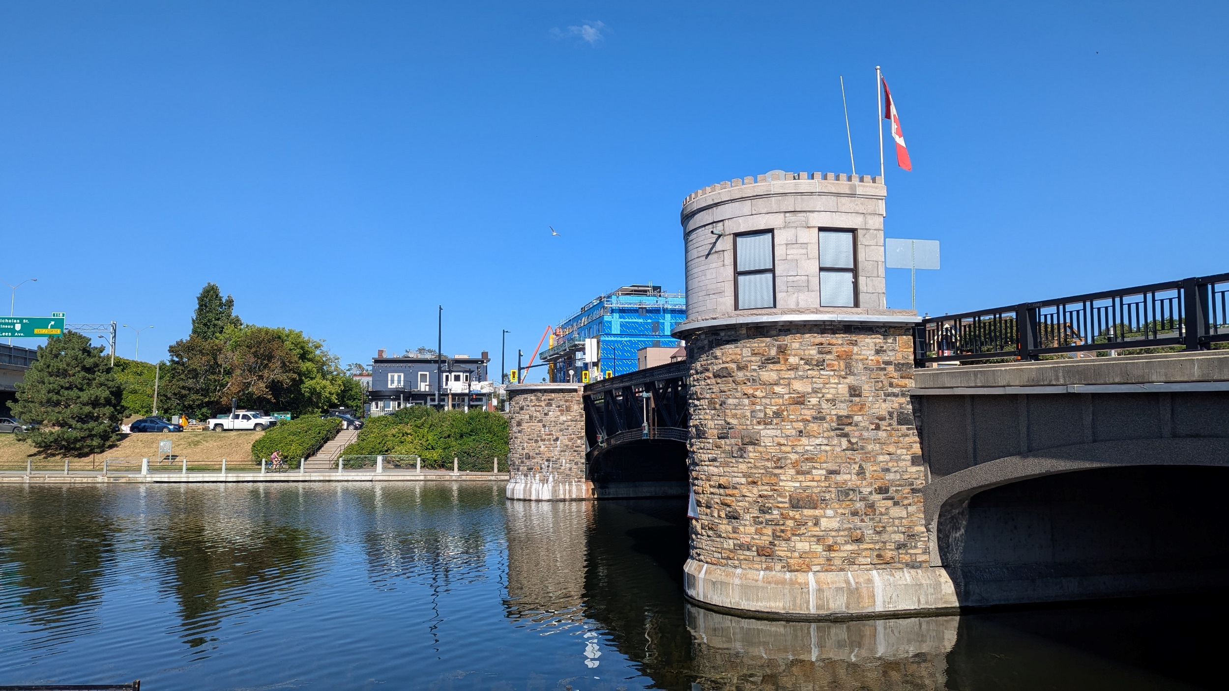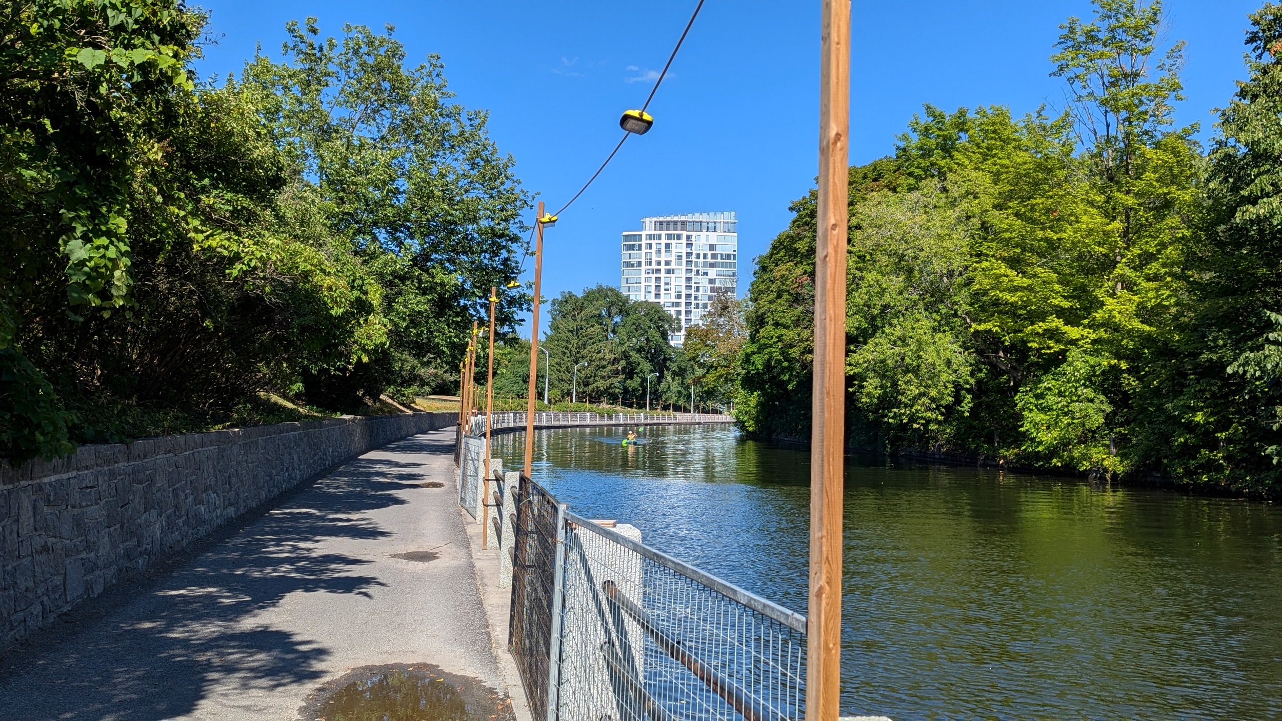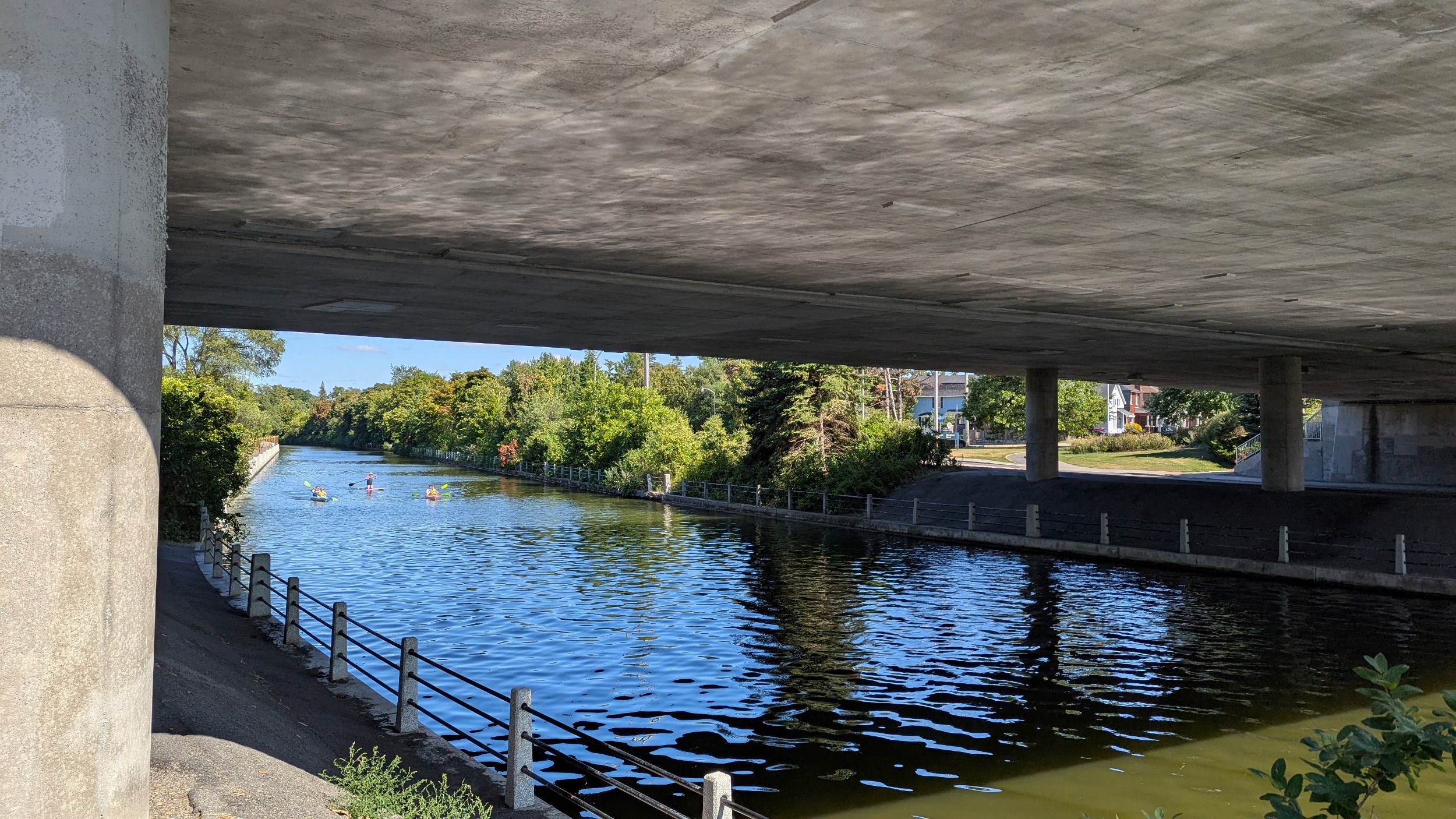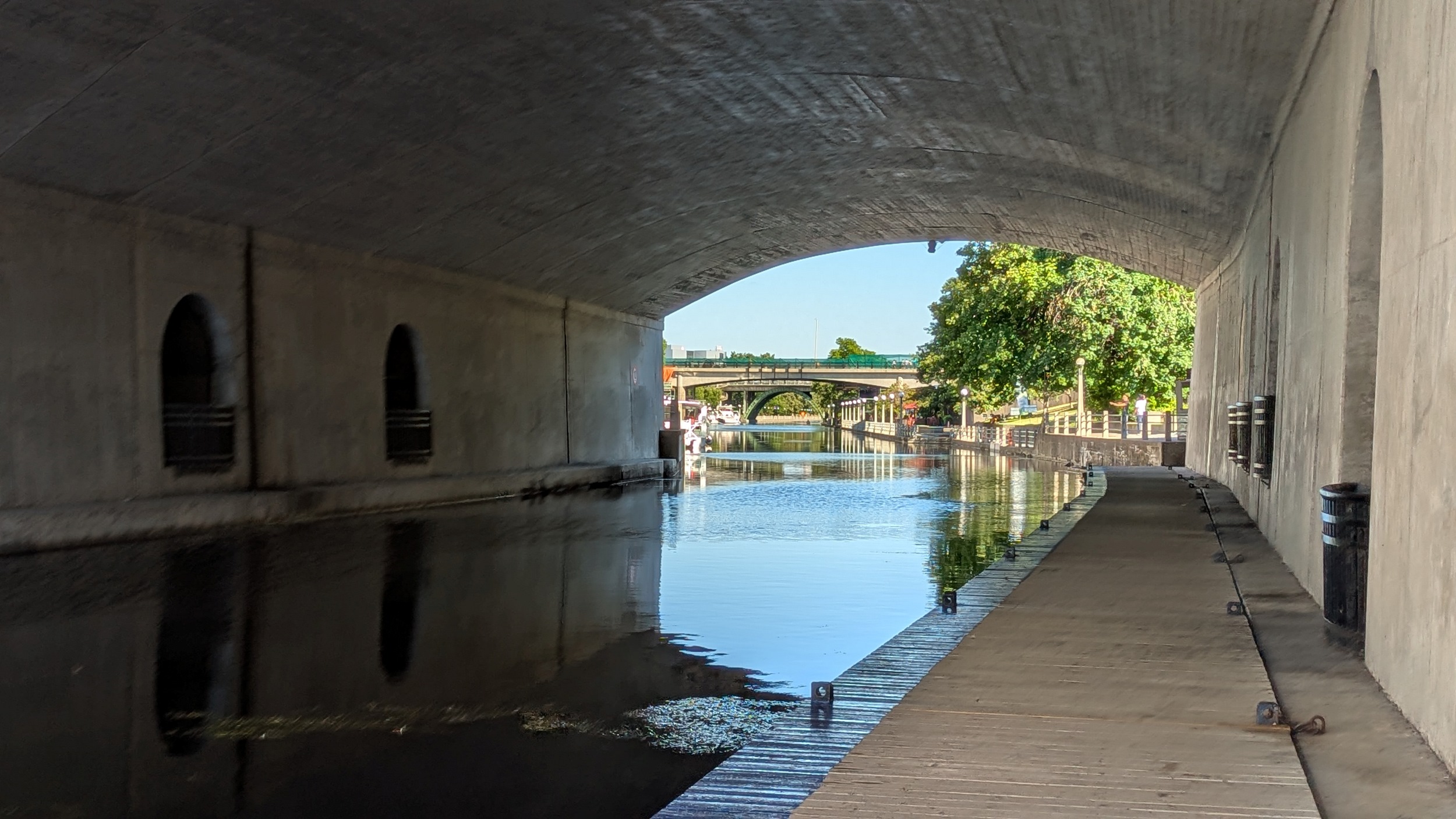 Very narrow section of the canal, then under Bank Street before widening out. There’s many sections where I face a headwind, and others that are stagnant. But formal trails line both sides now, even if there’s roadways on both sides too.