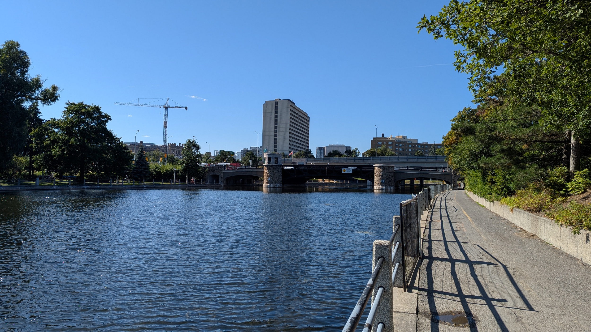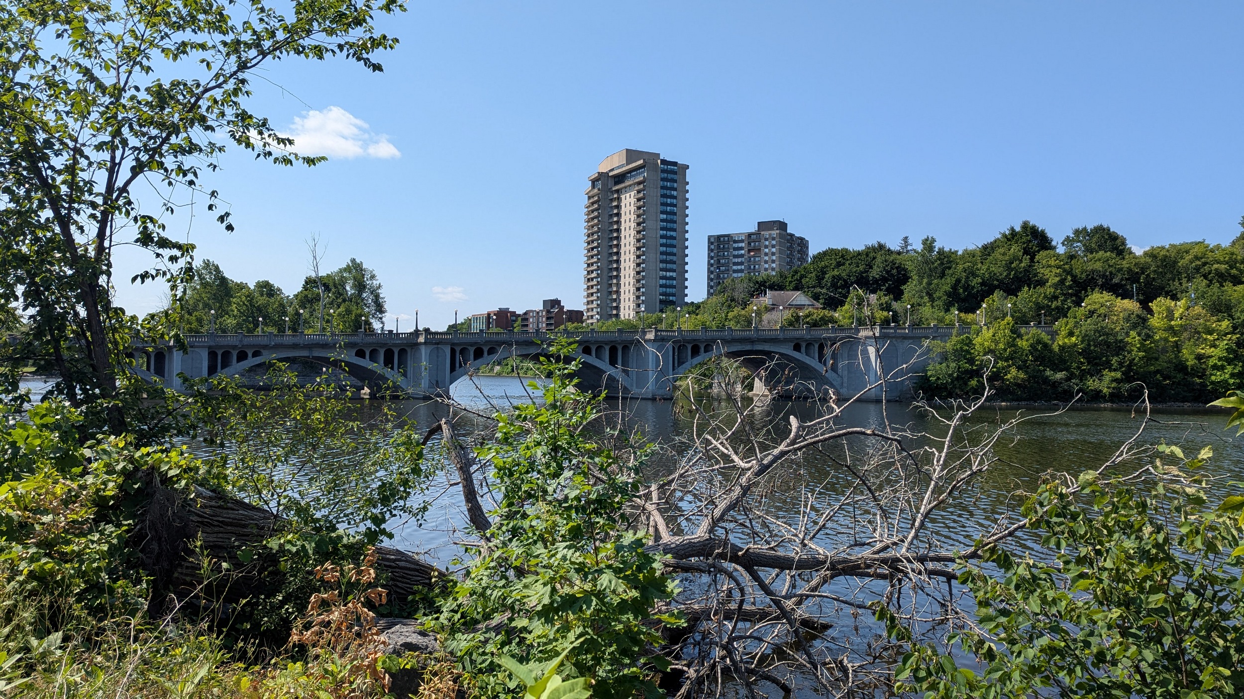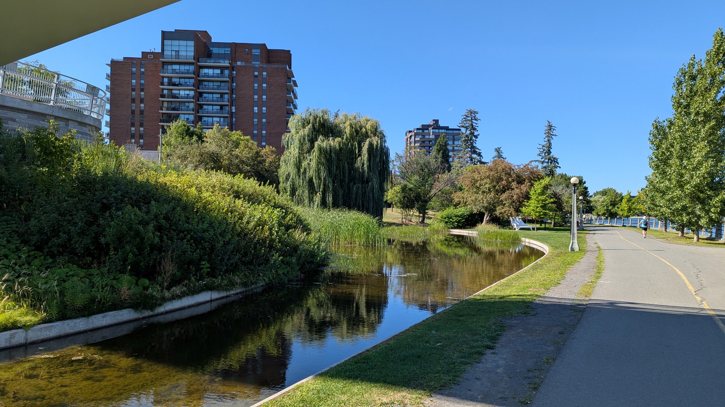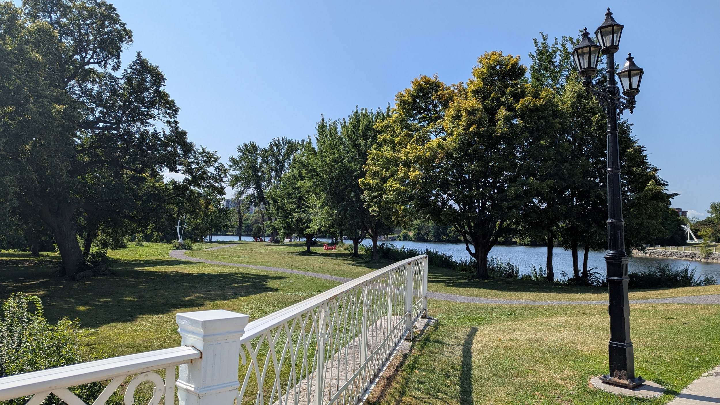 Loving the walk so far. Lots of mature trees line the trail along the Rideau River’s east bank. Plenty of viewpoints and benches and parkland adjacent.