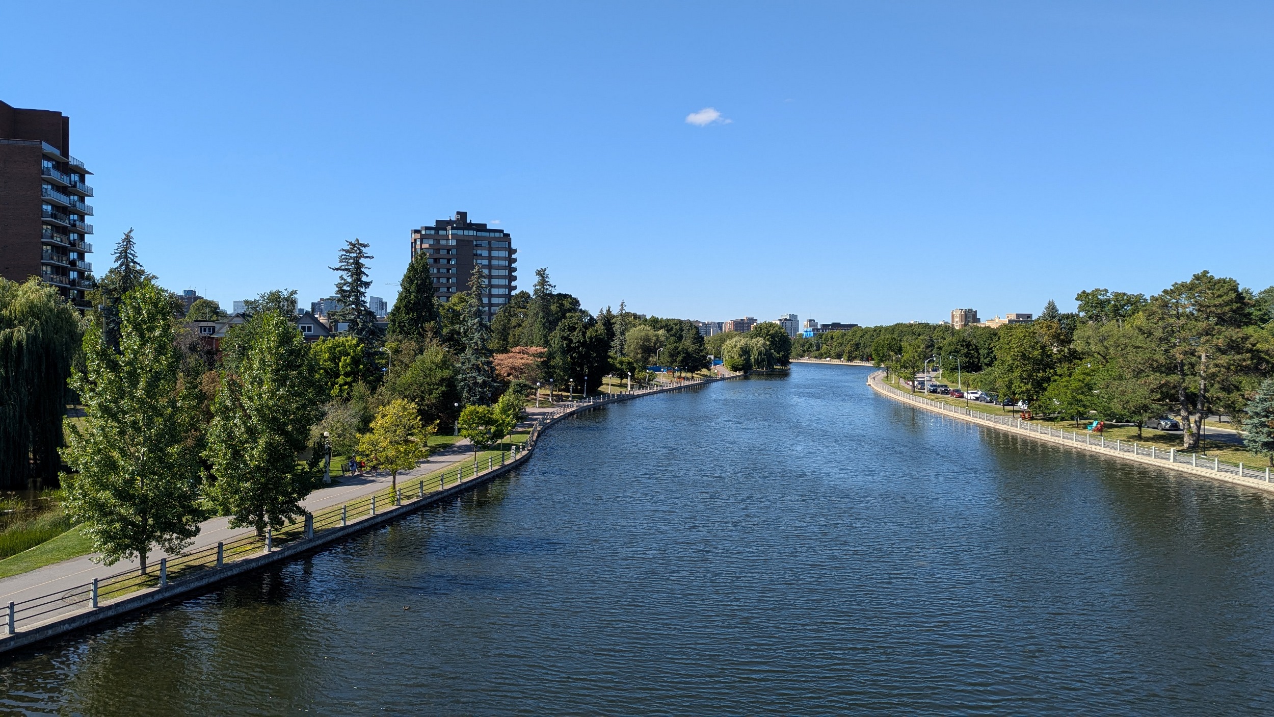 The canal is largely a straight shot, but one exception is Dow’s Lake. Huge willow-lined trails lead you to the edge at Queen Elizabeth Driveway, and then you start to head in a bit.