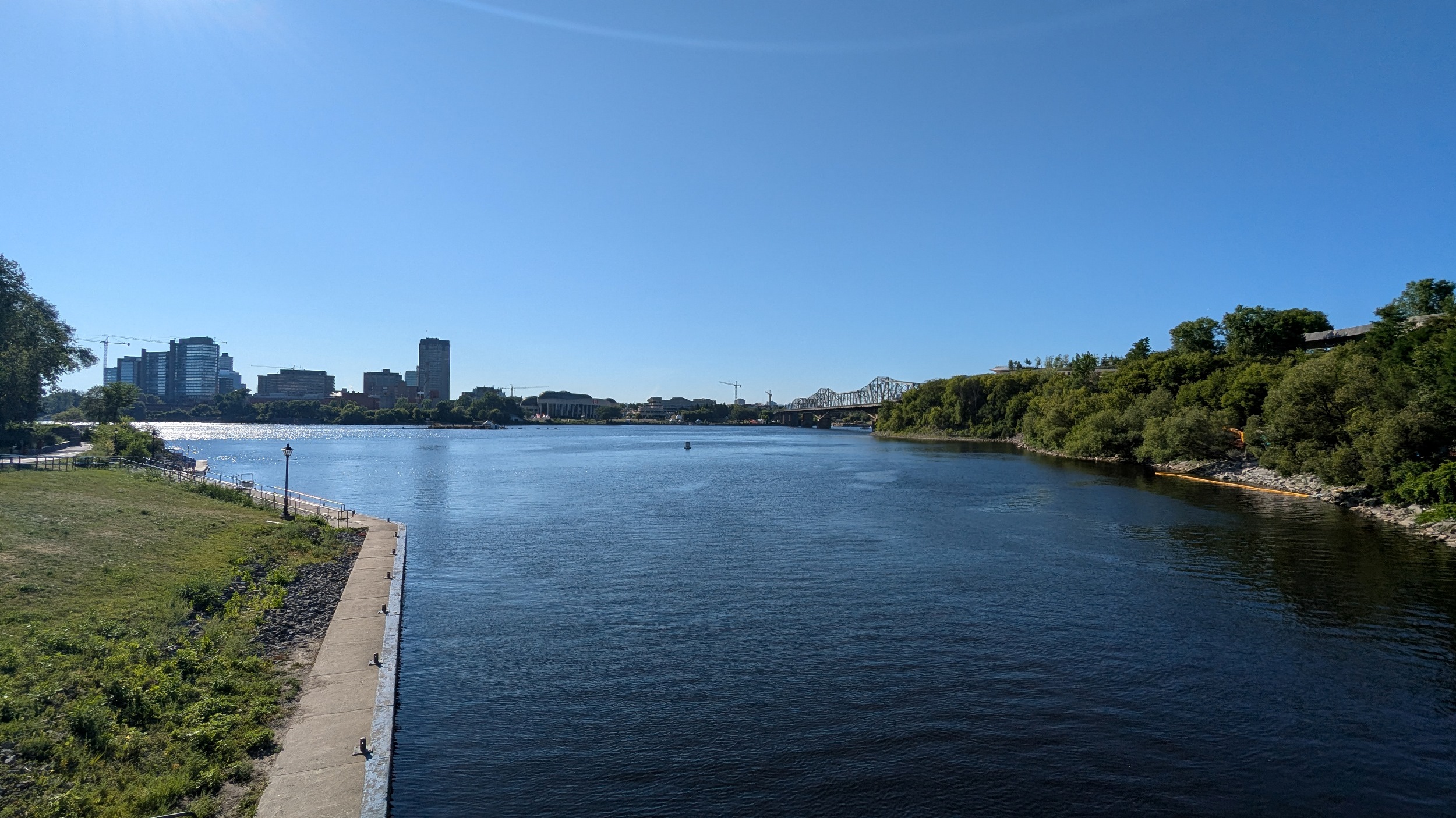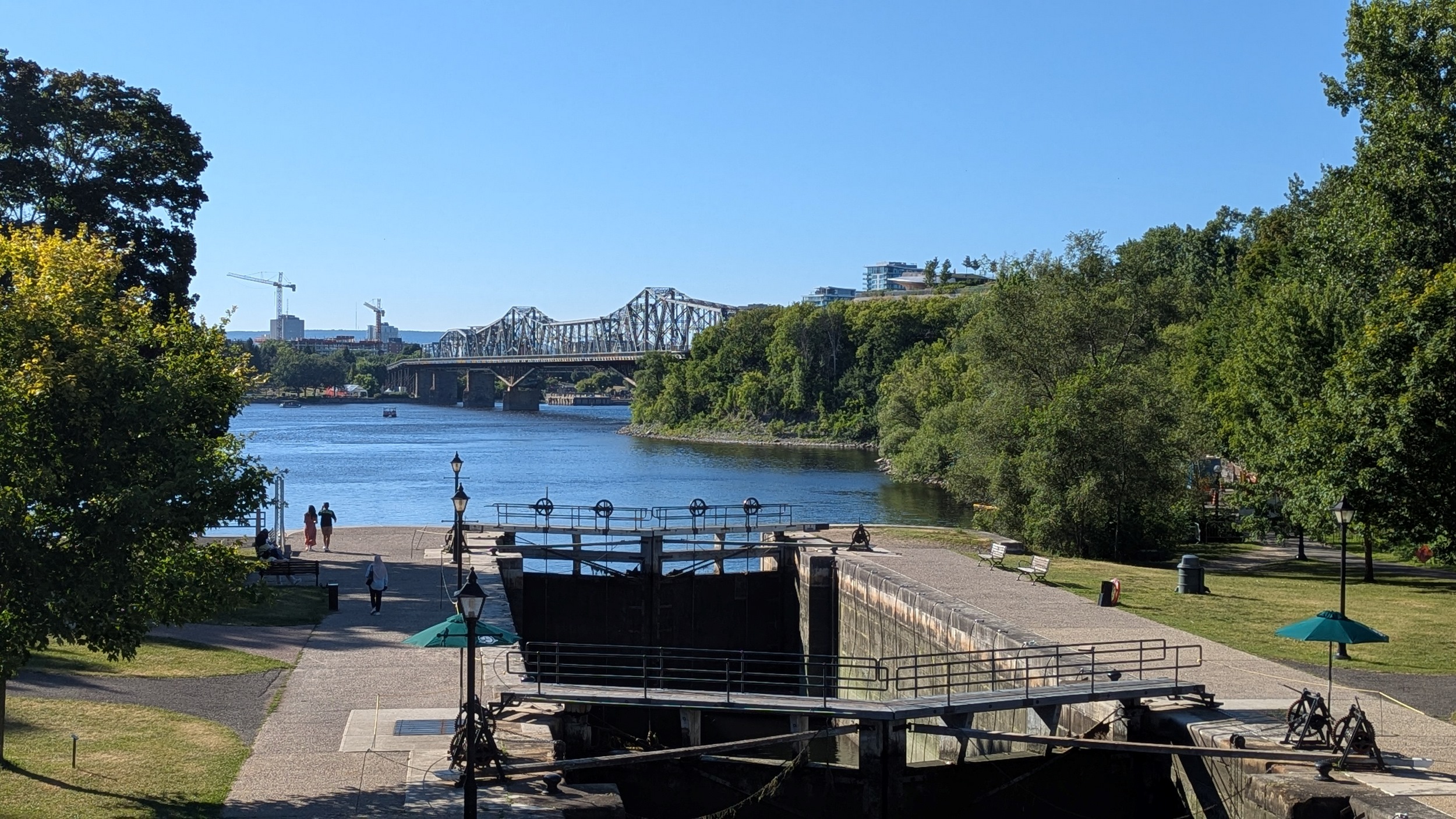 The Ottawa Locks, many of them to get down the vertical drop to the river. You are allowed to step on top of the lock gates, if you have the stomach. The Alexandra Bridge adorns the background. I planned to go to Kìwekì Point but a trail closure has thwarted me, so ending it here. Thanks for joining.