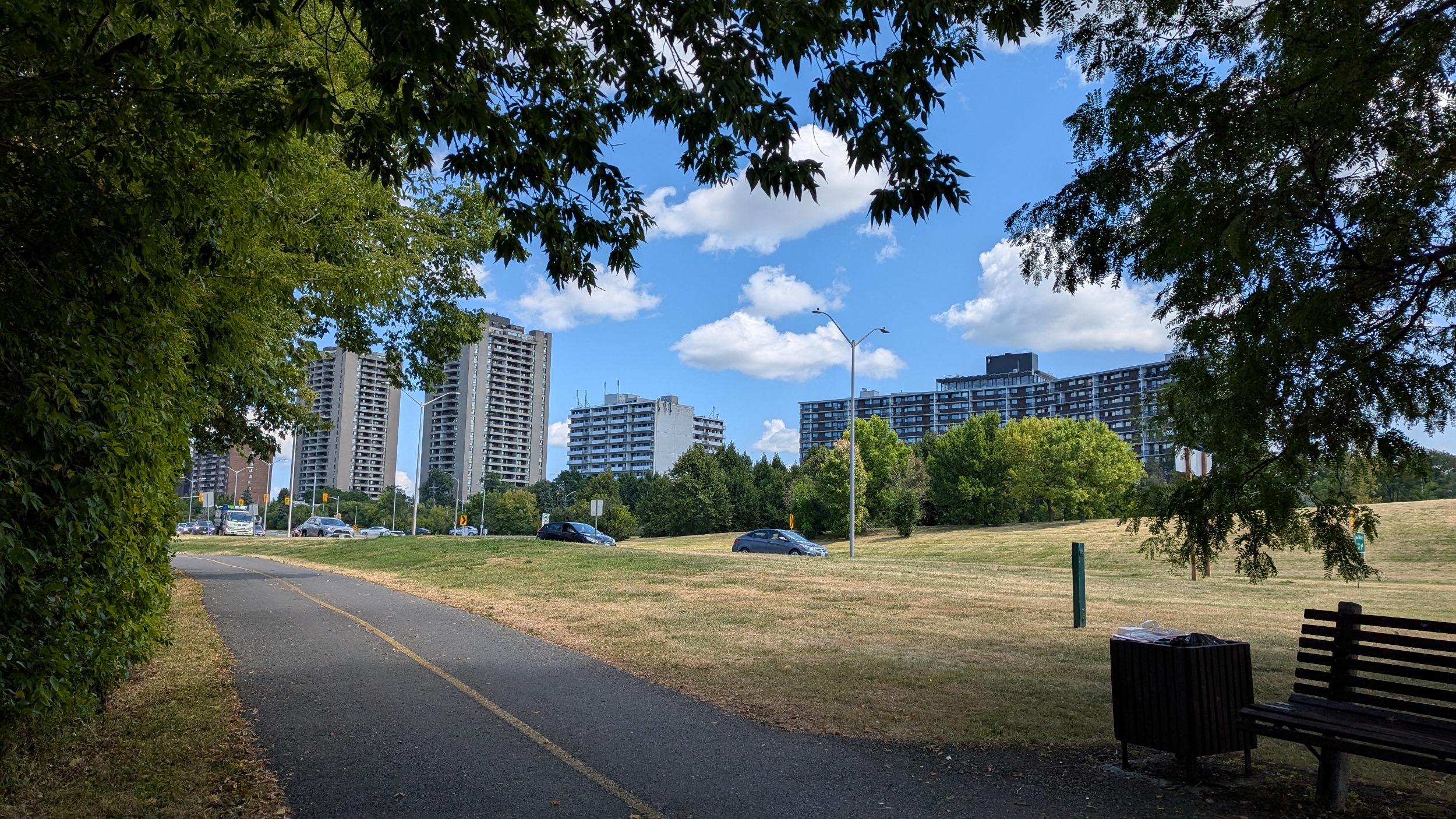 The trail continues, and I’m definitely in a walking minority amongst bikes. Maybe it’s because I’m sticking to the paved path when there’s a number of footpaths. No regrets. Also notable is the fact that there are paved connections to the Hurdman and Tremblay O-Train / Ottawa VIA stations.